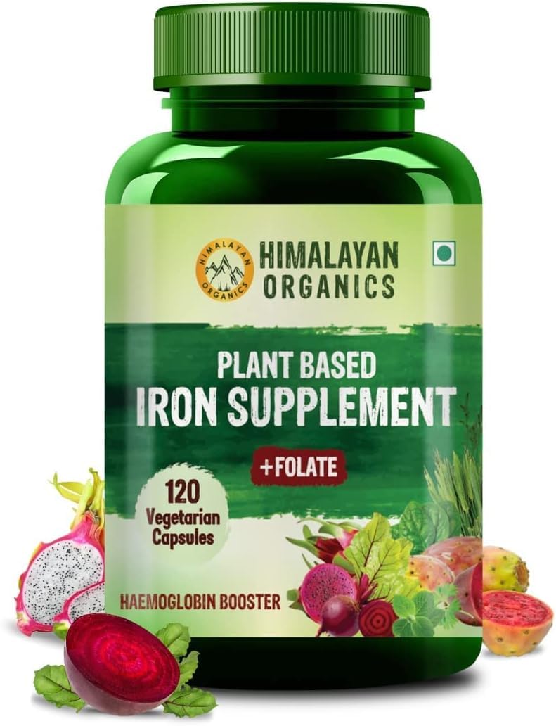Generic Plant Based Iron Supplement with Folate | Improved Hemoglobin & Oxygen Capacity | Stomach Friendly | Boost Energy - 120 Veg Capsules