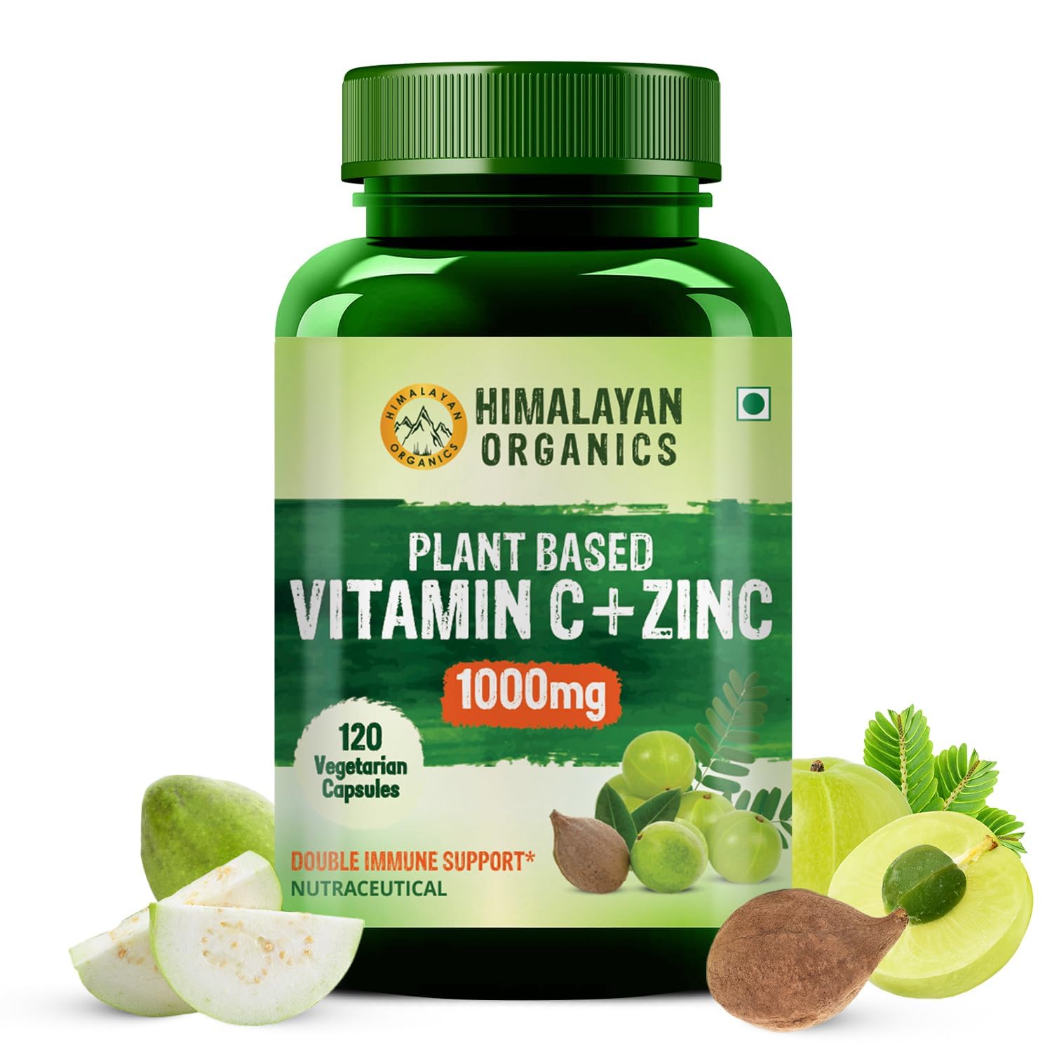 Plant Based Vitamin C with Zinc - 120 Veg CapsulesSAFE, HEALTHY, GLUTEN FREE: Plant-Based Vitamin C with Zinc is a plant-based dietary supplement free from gluten, eggs, fish, milk. Focused on sustainable farming and products, we do not encourage artificial colors, fillers, binders, harsh chemicals, or preservatives. POTENT ANTIOXIDANT: Vitamin C with Zinc Capsules are made up of plant-based ingredients like Green Amla, Spinach, Wheatgrass, Okra, Spirulina Pumpkin Seeds that are powerhouse of antioxidants. These capsules neutralize free radicals that cause damage to tissues and guard against oxidative stress. ENHANCED ABSORPTION: The Capsules interact with the other essential vitamins and minerals in the body like iron, which is crucial for proper growth and development. Its properties work on utilizing essential nutrients, minimizing the risk of anemia and iron deficiency in the body. YOUTHFUL GLOW: Vitamin C boosts the process of collagen synthesis that plays a critical role in connective tissues like those found in our organs and hair, skin, and nails. It brightens skin, diminishes fine lines and wrinkles, and develops healthy and younger-looking skin. 2X IMMUNITY BOOSTER: Best known for having a positive effect on the immune system, these Capsules, with an amazing combination of Vitamin C with Zinc act as a shield against oxidative stress, aids in microbial killing, and encourage the production of white blood cells.