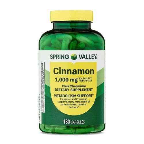 NO ARTIFICIAL ADDITIVES: Free from artificial colors and flavors, this supplement resonates with those looking for a more natural approach. A genuine commitment to your health and well-being. GLUTEN-FREE AND PURE: Crafted with utmost care, our Cinnamon Plus Chromium capsules contain no gluten or lactose. Ensuring purity and quality, it's a natural choice for those dedicated to a healthier life. Designed to back your body's natural processes, this supplement might aid in the efficient metabolism of carbohydrates, proteins, and fats. Dive into a journey where nature meets science, and experience the potential benefits. SPRING VALLEY'S EXPERTISE: Trusted for its dedication to well-being, Spring Valley's Cinnamon Plus supplement aligns with natural choices for a holistic lifestyle. Harness the ancient goodness of cinnamon complemented by the modern understanding of chromium's role in metabolic support.