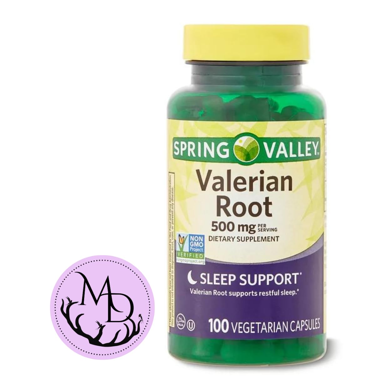 Generic Spring Valley Valerian Root 500mg Vegan Capsules (Valeriana officinalis) - Dietary Supplement for Sleep Support* + Includes DRI Store Sticker (Pack of 1-100 Count)
