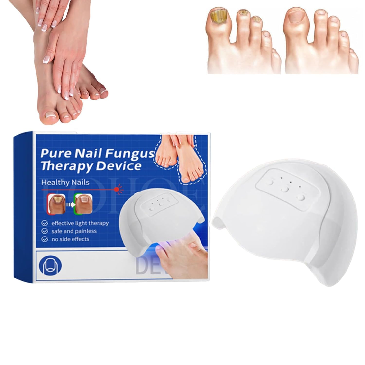 Furzero Nail Fungus Laser Device Warnings 11 Tips for Operation: Just Place The Device On The Affected Nail, Long Press The Power Button --- The Indicator Light Will Start Flashing, The Blue Light and Invisible Super Pulse Light Work at the Same Time.The Device is Treated for 7 Minutes.IT turns off automatically and it is recommended to use it at least Once a day to make the effect more noticeable.Department & Battery Efficient A USB Cable is included, Once Fully Chared, It Can Last for Days.A replacement battery is not required.The Toenail Gun is a Perfect Gift for Birthdays, Anniversaries, Valentine's Day and other Occasions.We offer you satisFactory solutions and a perfect customer service guarantee.Portable & Comfortable The Nail Cleaning Tool, Super Lightweight and Compact, Fits Comfortly on Fingers and Toes Of All Ses, Brings It Conveniently to Your Life, Anytime and Anywhere.Effective and Significant Effect: After 7 Minutes Daily Use, you will have a different experience.Within a few Weeks you will feel the joy of the great results.Furzero Purenail Mushroom Laser Therapy Device: Interact with 470nm Blue Light and 905nm Ultra-Pulsed Invisible Light Affected by Interaction.It is healthy and reliable and not a complex procedure. Furzero Nail Fungus Laser Device WARNHINWEISE 11Tips for operation: just place the device on the affected nail, long press the power button --- The indicator light will start flashing, the blue light and invisible super pulse light work at the same time. The device is treated for 7 minutes. It turns off automatically and it is recommended to use it at least once a day to make the effect more noticeable. Rechargeable & Battery Efficient A USB cable is included, once fully charged, it can last for days. A replacement battery is not required. The toenail gun is also a perfect gift for birthdays, anniversaries, Valentine's Day and other occasions. We offer you satisfactory solutions and a perfect customer service guarantee. PORTABLE & COMFORTABLE The nail cleaning tool, super lightweight and compact, fits comfortably on fingers and toes of all sizes, brings it conveniently to your life, anytime and anywhere. Effective and significant effect: after 7 minutes daily use, you will have a different experience. Within a few weeks you will feel the joy of the great results. Furzero Purenail Mushroom Laser Therapy Device: interact with 470nm blue light and 905nm ultra-pulsed invisible light affected by interaction. It is healthy and reliable and not a complex procedure.Generisch Furzero Purenail Fungus Laser Therapy Device, Canesten Nail Fungus Laser, Purenail Fungus Laser Therapy Device, Furzero Nail Fungus Laser Treatment Device