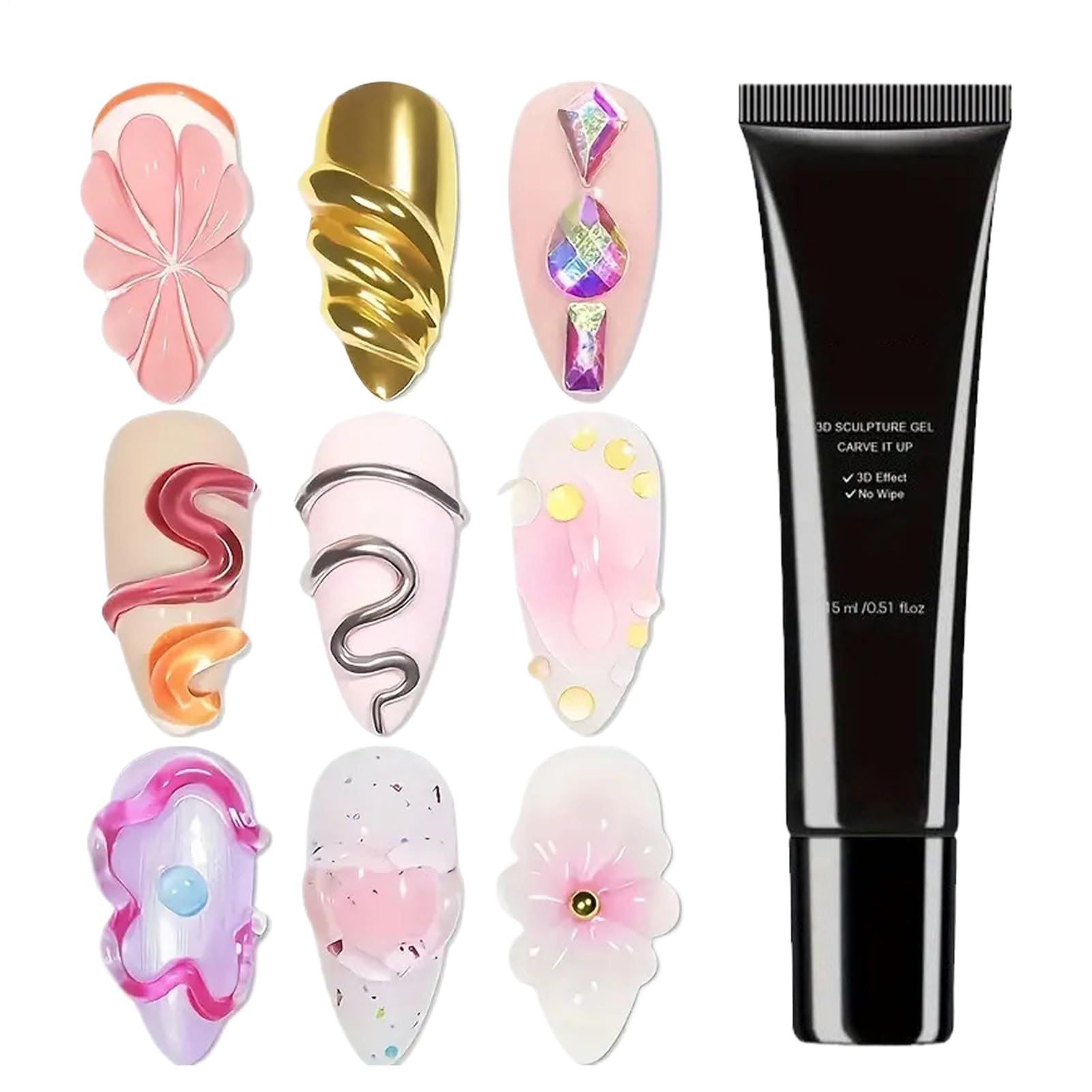 Generisch 3D Nail Gel 15ml Modeling Glue Nail Art Manicure Accessory Powder Carving Chrome Stones for Home Salon