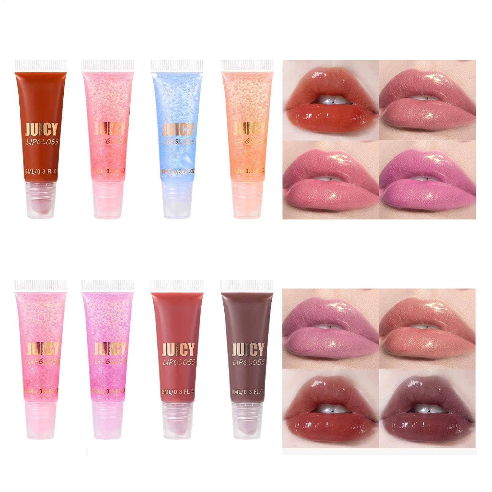Excellent Gift Choice: Elevate your lip game with our 8-pack of lip glosses, available in a range of colors to suit every mood and occasion. Designed to hydrate and deliver a luxurious shine, it's the perfect thoughtful gift for friends or family. Pearly shine and fullness. Enhance your makeup with our moisturizing gloss. The pearlescent ingredients not only provide a dazzling shine but also enhance the overall effect of your makeup, giving your lips a radiant appearance. Multifunctional: Upgrade your daily lip care routine with our multifunctional moisturizing gloss. It can be used as a lip mask and lip balm, keeping lips healthy, hydrated, and soft to the touch. Perfect for morning and evening use. Long-Lasting Hydration: Keep your lips hydrated all day with our moisturizing lip formula that doesn't wear off so quickly. Enjoy the natural-looking color and non-irritating texture for any occasion. Hydrating and nourishing: Discover deeply nourished and hydrated lips with our moisturizing gloss enriched with highly effective hydrating ingredients. Our unique formula repairs damaged skin, prevents chapped lips, and leaves lips soft and smooth like never before.
