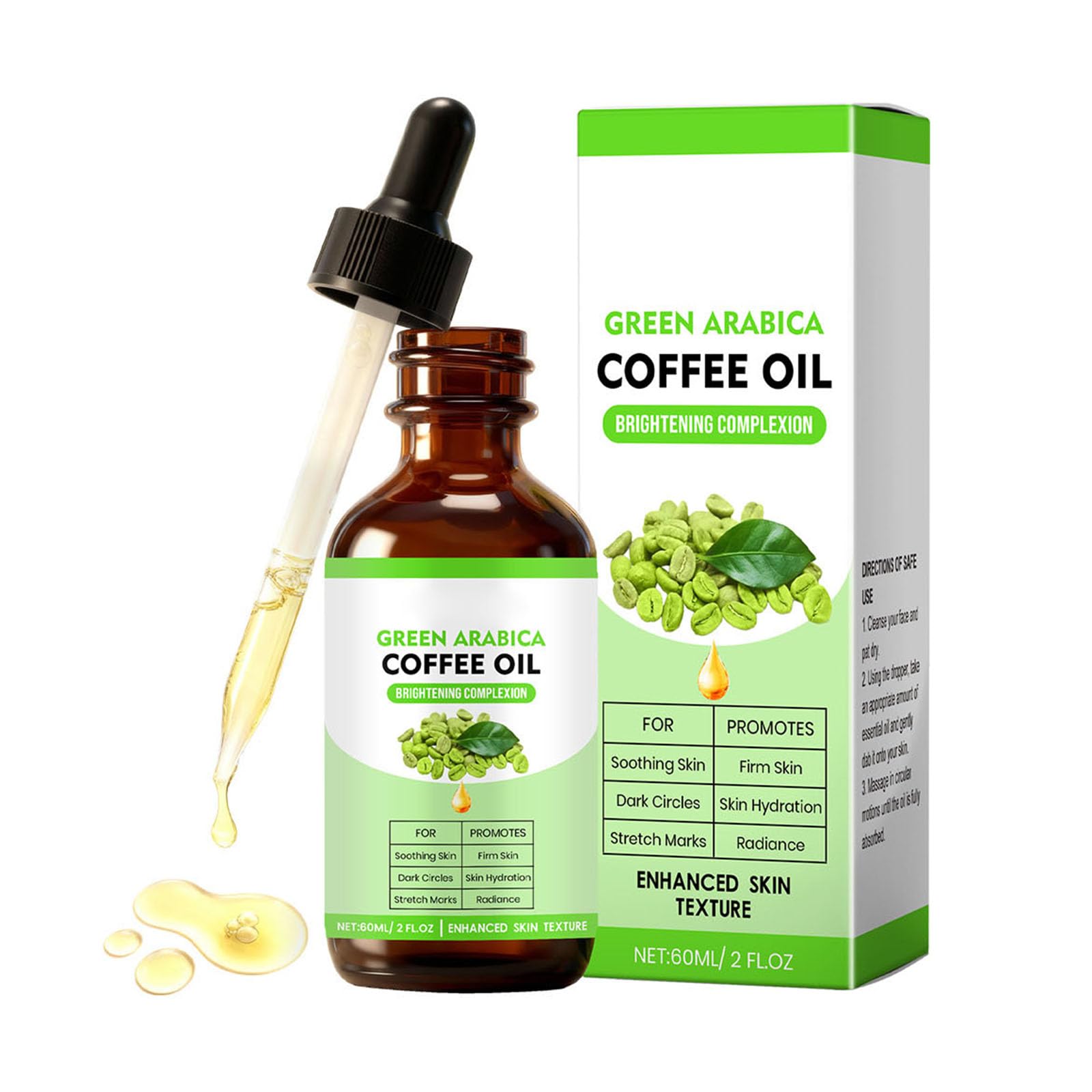 Pure and natural, certified quality: This product is made from pure, natural green coffee oil, without any additives. Thanks to the cold-pressed extraction process, the natural active ingredients of the coffee beans are fully preserved, so no nutrients are lost. A vegan formula suitable for consumers seeking natural skincare products. Protect yourself from the first signs of aging: Enriched with natural ingredients such as chlorogenic acid, it helps fight free radical damage and delays the appearance of skin aging. With long-term use, it improves skin elasticity, firmness, and radiance, ensuring a youthful and healthy complexion. Coffee Oil - Firming Skin Care - Deep Care and Long-Lasting Hydration: Rich in natural fatty acids, it deeply nourishes the skin, enhances moisture retention, and prevents water loss. After application, skin is soft and smooth, naturally radiant and healthy, and says goodbye to dryness and roughness. Coffee Oil Face Regains Strength. Enriched with caffeine to awaken skin's vitality: the natural caffeine in this product promotes blood circulation, helps reduce puffiness, and provides a radiant complexion. Whether used to revitalize skin in the morning or regenerate it at night, it provides vitality and restores skin's fullness and firmness. SAFETY WARNING Bee Venom Wrinkle Cream, Skin Regenerating Cream, Professional Bee Venom Ointment, Venomous Wart Removal Cream, Wart Cream for All Skin TypesSkin revitalization: The natural caffeine in green coffee oil promotes blood circulation, helps reduce puffiness, and ensures a radiant complexion. Effective deep conditioning: Rich in natural fatty acids, this facial coffee oil deeply nourishes the skin, strengthens the moisture barrier, and prevents water loss, leaving skin soft and smooth after application. Anti-wrinkle coffee oil, one bottle, multiple applications: Face: Effectively reduces puffiness, dark circles, and fine lines. Body: Helps diminish stretch marks and cellulite while improving skin smoothness. Hair: Nourishes the scalp and promotes healthy hair growth. One bottle meets all your beauty needs and saves you time and effort. Pioneering antioxidant: Rich in chlorogenic acid, this facial coffee oil helps fight free radical damage and delays the signs of aging. Long-term use improves skin elasticity, firmness, and radiance. Pure and natural, guaranteed quality: coffee oil is a pure and natural oil extracted from green coffee beans, without any additives. Thanks to the cold-pressed extraction process, the natural active ingredients are fully preserved, so no nutrients are lost.Huile de café contre les rides - 60 ml - Huile de café Arabica verte pure et naturelle - Pour le visage, le corps, les cheveux - Huile de café anti-bouffante et ferme - Huile de café - Soin de la peauDESCRIPTION DU PRODUIT DESCRIPTION DU PRODUIT Pure et naturelle, qualité certifiée : ce produit est fabriqué à partir d'huile de café vert naturelle pure, sans aucun additif. Grâce au processus d'extraction pressé à froid, les principes actifs naturels des grains de café sont entièrement préservés, de sorte qu'aucun nutriment n'est perdu. Une formule végétalienne adaptée aux consommateurs qui recherchent des produits de soins naturels pour la peau. Protégez-vous des premiers signes du vieillissement : enrichi en ingrédients naturels tels que l'acide chlorogénique, il aide à lutter contre les dommages causés par les radicaux libres et retarde l'apparition du vieillissement cutané. Avec une utilisation à long terme, il améliore l'élasticité, la fermeté et l'éclat de la peau et assure un teint jeune et sain. Huile de café - Soin de la peau raffermissant - Soin en profondeur et hydratation longue durée : riche en acides gras naturels, elle nourrit la peau en profondeur, renforce la rétention d'humidité et prévient la perte d'eau. Après l'application, la peau est douce et lisse, rayonne naturellement et saine, et dit adieu à la sécheresse et à la rugosité. Coffee Oil Face Retrouve sa force Enrichie en caféine pour réveiller la vitalité de la peau : la caféine naturelle contenue dans ce produit favorise la circulation sanguine, aide à réduire les gonflements et procure un teint éclatant. Que ce soit pour revitaliser la peau le matin ou pour la régénérer la nuit, il apporte de la vitalité et restaure la plénitude et la fermeté de la peau. AVERTISSEMENT DE SÉCURITÉ Pommade à l'abeille contre les rides, crème régénérante de la peau, pommade professionnelle au venin d'abeille, crème pour éliminer les verrues venimes, crème contre les verrues pour tous les types de peauRevitalisation de la peau : la caféine naturelle contenue dans l'huile de café vert favorise la circulation sanguine, aide à réduire les gonflements et assure un teint éclatant. Soin efficace en profondeur : l'huile de café pour le visage riche en acides gras naturels, nourrit la peau en profondeur, renforce la barrière hydratante et empêche la perte d'eau, laissant la peau douce et lisse après l'application. Huile de café Contre les rides une bouteille, Applications multiples - Visage : réduit efficacement les poches, les cernes et les ridules. Corps : aide à estomper les vergetures et la cellulite tout en améliorant la douceur de la peau. Cheveux : nourrit le cuir chevelu et favorise une croissance saine des cheveux. Un flacon répond à tous vos besoins de beauté et vous fait gagner du temps et des efforts. Pionnier parmi les antioxydants : l'huile de café pour le visage riche en acide chlorogénique, elle aide à lutter contre les dommages causés par les radicaux libres et retarde les signes du vieillissement. Une utilisation à long terme améliore l'élasticité, la fermeté et l'éclat de la peau. Pure et naturelle, garantie de qualité : l'huile de café est une huile pure et naturelle issue de grains de café vert, sans aucun additif. Grâce au processus d'extraction pressé à froid, les principes a