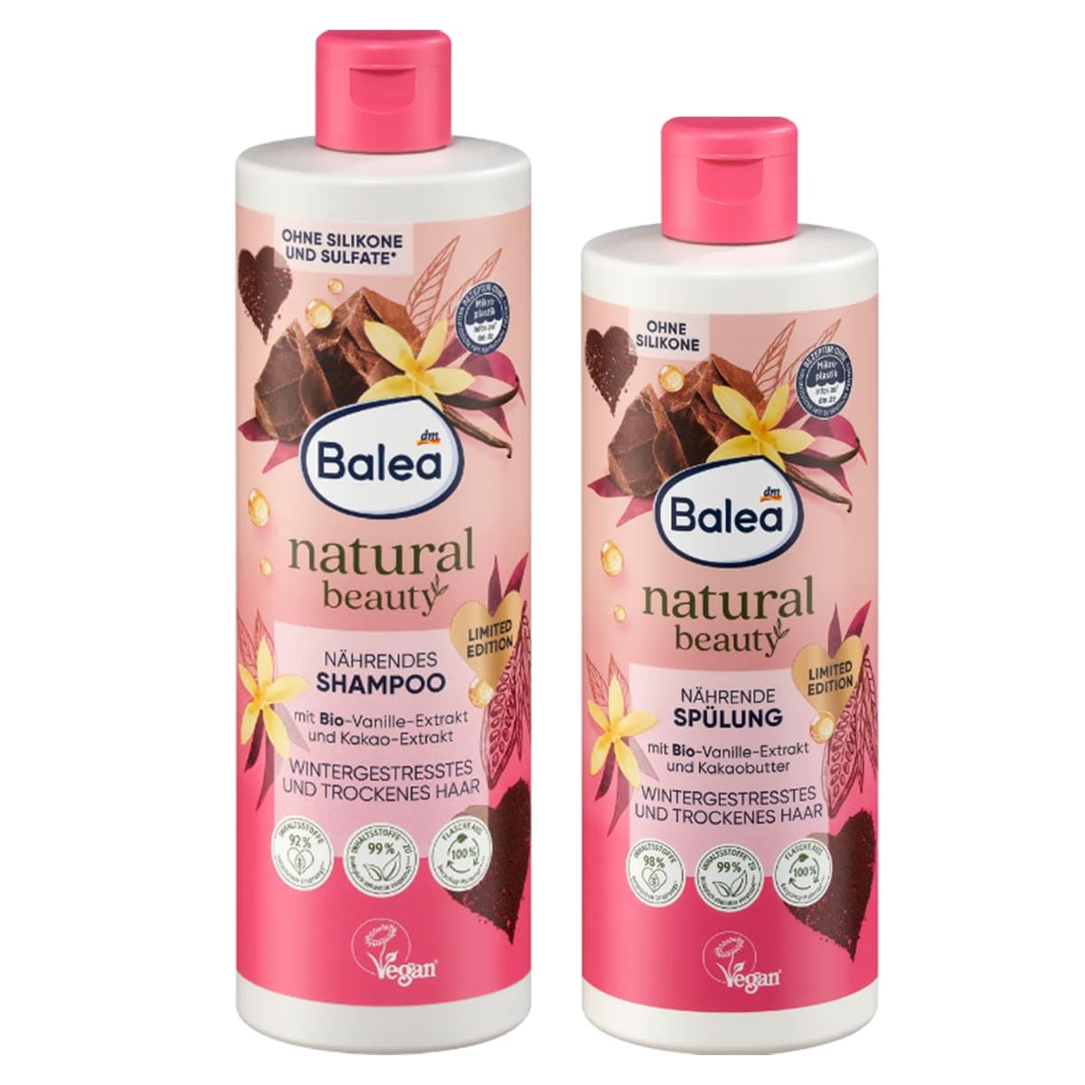 Generisch Balea Natural Beauty Shampoo with Vanilla Extract and Cocoa Butter 400ml + Natural Beauty Conditioner with Vanilla Extract and Cocoa Butter 350ml