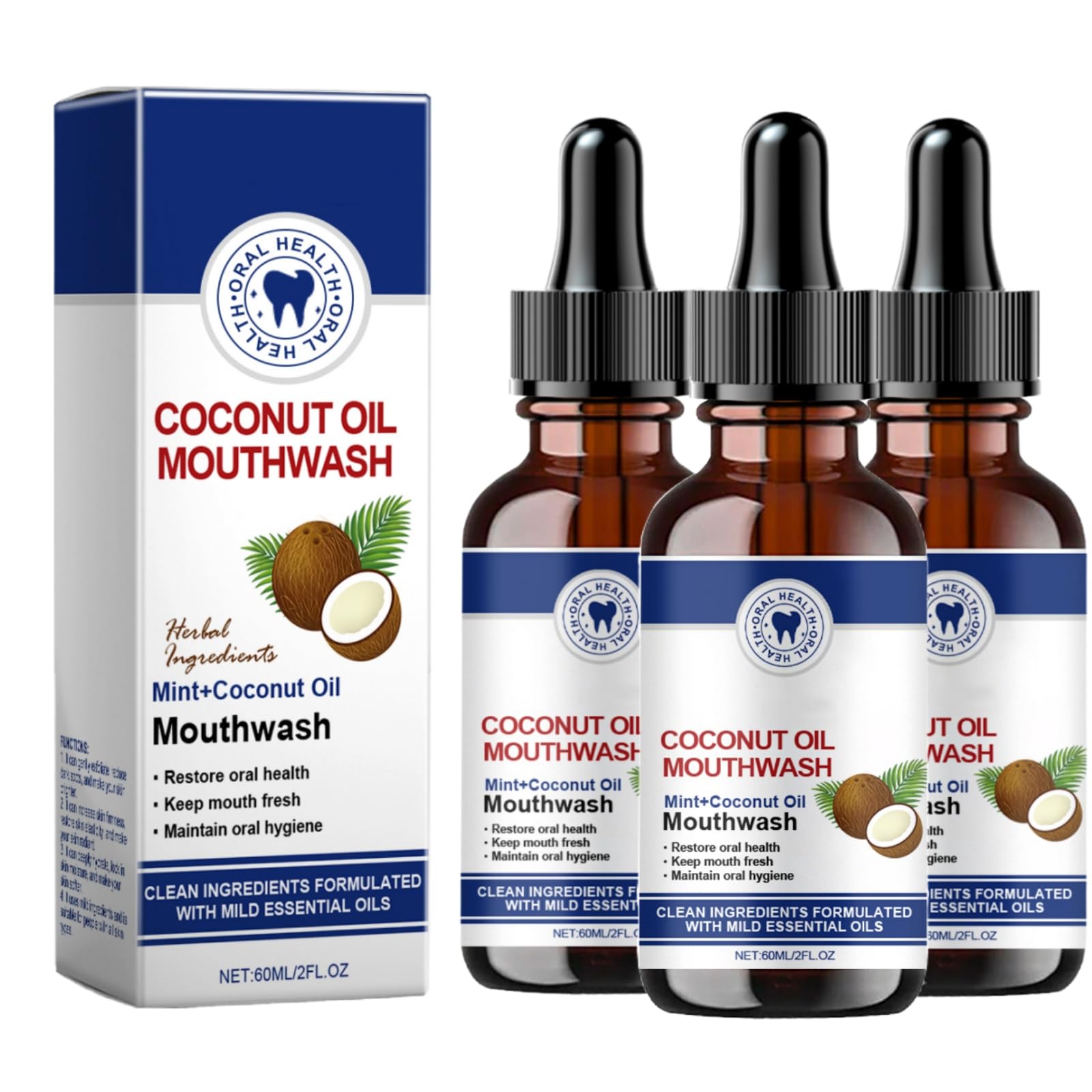 Suitable for all ages: This coconut and peppermint mouthwash is safe and easy to use daily, suitable for long-term oral care. It is alcohol-free, fluoride-free, preservative-free, cruelty-free, and free of artificial flavors. Safe for all ages. How to use: Simply pour 15 ml of coconut and peppermint mouthwash into a measuring cup and shake for 2 to 10 minutes. Rinse the oil into the bin to avoid the tube. Brush your teeth immediately afterward. Easy to carry: This coconut and peppermint mouthwash is stylish and easy to carry. It is suitable for home, office, or travel to maintain oral hygiene anytime, anywhere. Natural Ingredients: Our Coconut Peppermint Mouthwash is made from 100 pure, alcohol-free fractionated coconut oil and peppermint essential oil. Natural ingredients are safer to use. [2025 – Coconut Update – Fresh Oil – Mouthwash] This peppermint coconut mouthwash helps maintain oral hygiene. The fractionated coconut oil helps freshen breath, maintain gum health, strengthen, and whiten teeth. It is helpful for bad breath and cleanses your mouth.