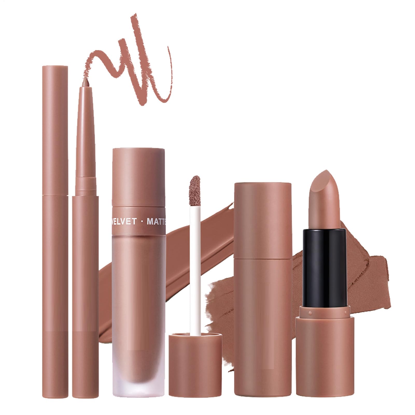 ce kit de rouge à lèvres et de crayon à lèvres comprend un brillant à lèvres pour répondre à différents besoins, un crayon à lèvres précis pour une définition parfaite et un rouge à lèvres mat pour un look élégant et polyvalent.