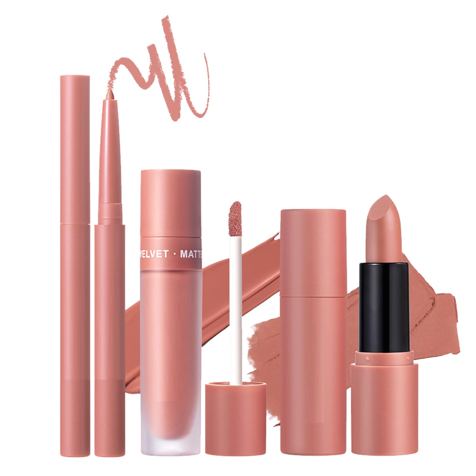 ce kit de rouge à lèvres et de crayon à lèvres comprend un brillant à lèvres pour répondre à différents besoins, un crayon à lèvres précis pour une définition parfaite et un rouge à lèvres mat pour un look élégant et polyvalent.