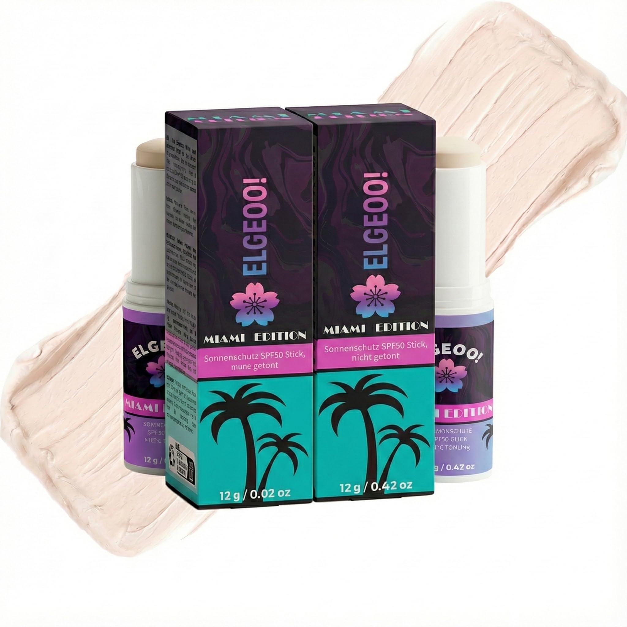 ELGEOO SunStick SPF 50 - Miami Edition (2-pack) Sun protection has never been easier. ELGEOO's color-free SunStick SPF 50 offers reliable broad-spectrum protection against UVA and UVB rays, without whitening or leaving a sticky residue on the skin. Its transparent formula absorbs quickly and is suitable for all skin types. Thanks to its compact stick format, the sunscreen can be applied neatly and precisely – ideal for the face, neck, lip contours, or exposed areas of the body. Whether for everyday use, sports, or the beach, the SunStick is water and sweat resistant, reliably protecting you on sunny days. This convenient 2-pack ensures you always have a stick handy – at home, on the go, or on vacation. No leaks, no need to apply post-cream with your hands, no stress. Miami Edition is synonymous with modern skincare design, summer vibes, and functional performance. Designed for those who want to integrate simple, elegant, and effective sun protection into their daily lives. Directions: Apply evenly to the skin. Reapply regularly for optimal protection, especially after swimming or excessive sweating. SAFETY WARNING Not applicableMiami Edition: Modern sun protection for everyday life: stylish design and functional sun protection. The Miami Edition embodies summer, lightness, and urban skincare – designed for those who want to easily integrate sun protection into their daily routine. Pack of 2 convenient SunSticks – always have one stick with two SunSticks in the kit – perfect for travel, your handbag, gym bag, or holidays. Quick and clean hands-free application, anytime, anywhere. Water and sweat resistant – perfect for sports and the beach, whether for fitness, running, swimming, or beach days: the SunStick stays reliably in place even when wet or sweaty. Ideal for active days, outdoor adventures, and summer holidays. Dye-free – no bleaching, no glue. The lightweight texture is completely invisible on the skin. Perfect for the face, neck, and body, even over makeup or beards. No greasy film, no shine, no discoloration. High broad-band protection SPF 50 – Reliable and invisible. ELGEOO's SunStick SPF 50 effectively protects your skin against UVA and UVB rays. Its transparent, colorless formula absorbs quickly and leaves no white cast – ideal for all skin types.ELGEOO SunStick SPF 50 « Miami Edition » - Lot de 2 sans teinte - Protection solaire invisible pour visage et corps - Pas de blanchiment - Imperméable - Idéal pour le sport, la plage et le quotidienDESCRIPTION DU PRODUIT DESCRIPTION DU PRODUIT ELGEOO SunStick SPF 50 - Miami Edition (lot de 2) La protection solaire n'a jamais été aussi facile. Le SunStick SPF 50 d'ELGEOO sans coloration vous offre une protection fiable à large bande contre les rayons UVA et UVB, sans blanchiment ni sensation collante sur la peau. Sa formule transparente pénètre rapidement et convient à tous les types de peau. Grâce à sa forme compacte en stick, la protection solaire s'applique proprement et de manière ciblée - idéale pour le visage, le cou, les contours des lèvres ou les zones exposées du corps. Que ce soit au quotidien, au sport ou à la plage, la SunStick est résistante à l'eau et à la transpiration et vous accompagne de manière fiable pendant les journées ensoleillées. Ce lot pratique de 2 vous permet d'avoir toujours un bâton à portée de main – à la maison, en déplacement ou en vacances. Pas de fuite, pas de post-crème avec les mains, pas de stress. Miami Edition est synonyme de design moderne Skincare, de vibrations estivales et de performances fonctionnelles. Conçu pour les personnes qui souhaitent intégrer une protection solaire simple, élégante et efficace dans leur vie quotidienne. Mode d'emploi : appliquer uniformément sur la peau. Renouveler régulièrement pour une protection optimale, surtout après la natation ou la transpiration excessive. AVERTISSEMENT DE SÉCURITÉ Ne s'applique pasÉdition Miami : protection solaire moderne pour le quotidien : design élégant et protection solaire fonctionnelle. L'édition Miami est synonyme d'été, de légèreté et de soin urbain de la peau – conçue pour les personnes qui souhaitent intégrer facilement la protection solaire dans leur vie quotidienne. Lot de 2 bâtons SunSticks pratiques – Toujours un bâton avec deux SunSticks en kit – Parfait pour les déplacements, le sac à main, le sac de sport ou les vacances. Application rapide et propre sans les mains, à tout moment et n'importe où. Résistant à l'eau et à la transpiration – Parfait pour le sport et la plage, que ce soit pour le fitness, la course, la natation ou les journées de plage : le SunStick tient de manière fiable même en cas de transpiration et d'eau. Idéal pour les journées actives, les aventures en plein air et les vacances d'été. Sans coloration – Pas de blanchiment, pas de colle. La texture légère est totalement invisible sur la peau. Parfait pour le visage, le cou et le corps, même sur le maquillage ou la barbe. Pas de film gras, pas de brillance, pas de décoloration. Haute protection de bande large SPF 50 – Fiable et invisible. Le SunStick SPF 50 d'ELGEOO protège efficacement votre peau contre les rayons UVA et UVB. Sa formule transparente sans coloration pénètre rapidement et ne laisse pas de film blanc - idéale pour tout type de peau.