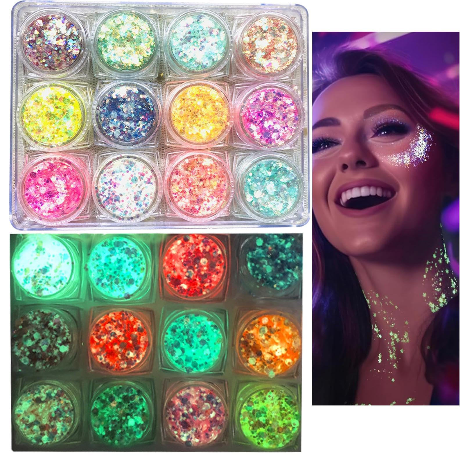 Add a touch of sparkle to your life with our glitter face and body makeup. With a wide range of colors and generous amounts, these gels glow in the dark and are perfect for Halloween, Carnival, Christmas, costume parties, and more. Lightweight, ultra-thin, and shimmering, they are easy to apply and remove. Specifications: Net Contents: 5g x 12 pieces Package Contents: 12 Glitter Body GelsUses: For Halloween, carnival, Christmas, costume parties, and more. Safe for use on nails, face, arms, back, and other skin surfaces. Easy to use: Removes quickly and easily with water or makeup remover wipes, making it easy to apply and remove without leaving any residue. Easily removed with water or makeup remover wipes. Eco-friendly creation: Enhance your festival look with our glitter body gel, made entirely from eco-friendly materials. The safe and skin-friendly formula can be applied to both the face and body, while its ultra-fine, lightweight, and shimmering properties add a stylish touch to any look. Elevate your party game while being eco-conscious. Glows in the dark: Our glitter body gel is a game changer that makes you visible even in low-light conditions. Never lose your friends in dark places again. The gel enhances your visibility and makes your look shine by absorbing light. They glow in the dark when exposed to sunlight or UV rays. Perfect for raves, festivals, and nights out. Fascinating shine: make the crowd sparkle and turn heads with our glitter body gel. Blended with fine glitter and hexagonal shapes, it's available in 12 brilliant colors to suit any occasion.Maquillage à paillettes pour le visage et le corps, gel à paillettes pour le corps, 12 couleurs de maquillage à paillettes épaisses, fard à paupières liquide scintillant, joli gel pailleté pour lesDESCRIPTION DU PRODUIT Ajoutez un peu d'éclat à votre vie avec notre maquillage pailleté pour le visage et le corps. Avec beaucoup de couleurs et de quantité, elles brillent dans le noir et sont parfaites pour Halloween, le carnaval, Noël, les fêtes costumées et plus encore. Léger, ultra fin et scintillant, il est facile à appliquer et à enlever. Spécificités : Contenu net : 5 g x 12 pièces Bon de livraison : 12 gels pailletés pour le corpsUtilisation : pour Halloween, carnaval, Noël, fêtes costumées et plus encore. Utilisation sûre sur les ongles, le visage, les bras, le dos et d'autres surfaces de la peau. Facile à utiliser : s'enlève rapidement et facilement avec de l'eau ou des lingettes démaquillantes, ce qui le rend facile à appliquer et à enlever et ne laisse aucun résidu. S'enlève facilement avec de l'eau ou des lingettes démaquillantes. Création respectueuse de l'environnement : embellissez votre look de festival avec notre gel à paillettes pour le corps, entièrement fabriqué à partir de matériaux respectueux de l'environnement. La formule sûre et douce pour la peau peut être appliquée sur le visage et le corps, tandis que ses propriétés ultra fines, légères et chatoyantes ajoutent une touche élégante à n'importe quelle décoration. Améliorez votre jeu de fête tout en étant respectueux de l'environnement. Brille dans le noir : notre gel à paillettes pour le corps est un changement de jeu qui vous rend visible même dans des conditions de lumière limitée. Ne perdez plus vos amis dans des endroits sombres. Le gel augmente votre visibilité et fait briller votre look en absorbant la lumière. Elles brillent dans l'obscurité lorsqu'elles sont exposées à la lumière du soleil ou aux UV. Parfait pour les raves, les festivals et les soirées nocturnes. Brillance fascinante : faites briller la foule et faites sensation avec notre gel pailleté pour le corps. Mélangées avec de fines paillettes et de formes hexagonales, elles sont disponibles en 12 couleurs brillantes pour s'adapter à toutes les occasions.
