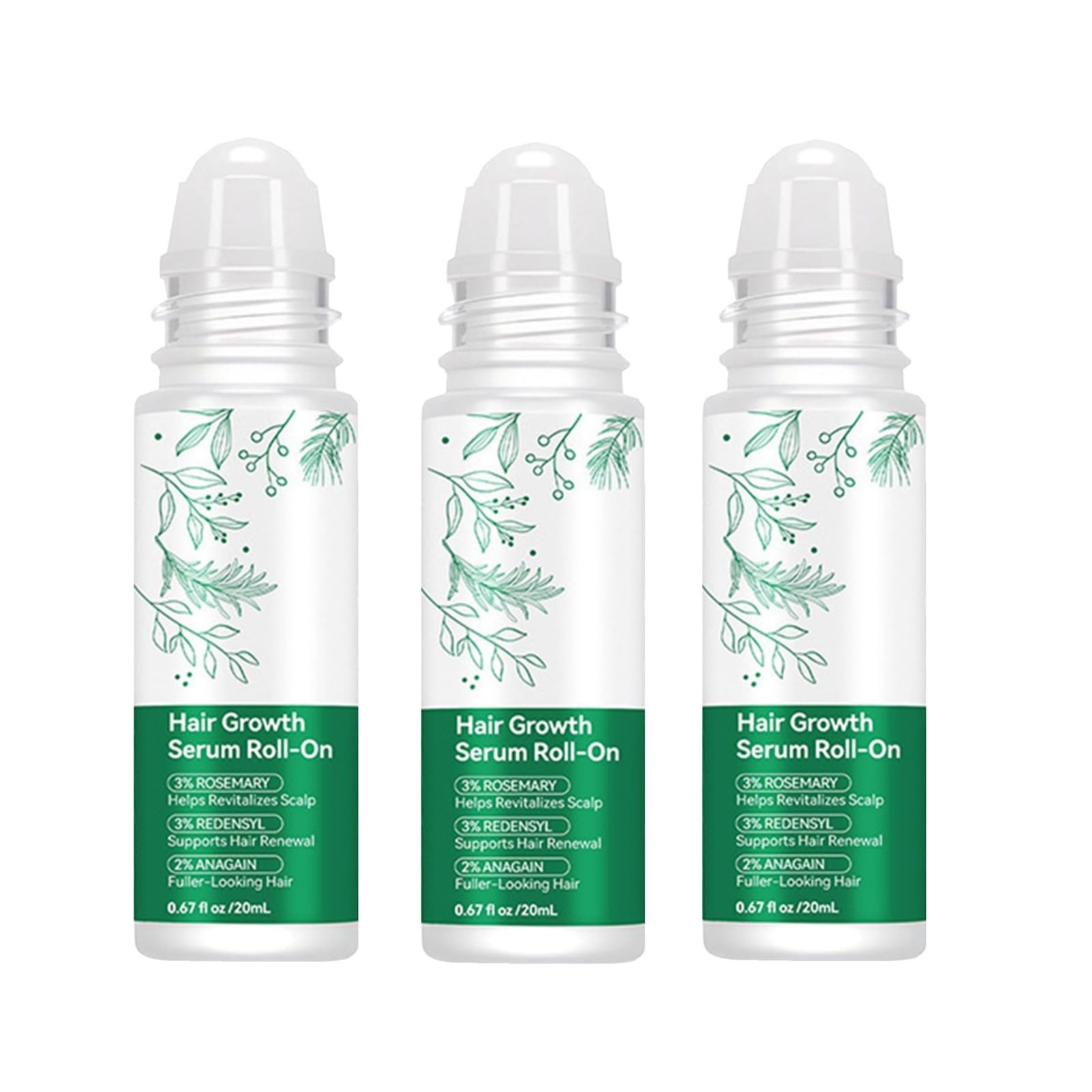 Water-like essence: This scalp serum easily penetrates the hair shaft, is refreshing and non-greasy, and nourishes hair with nutrients at any time. Powerful, specialized, and highly effective formula: Two innovative ingredients – Redensyl and AnaGain – have been specially added. By specifically influencing signal transmission and follicle activation, they promote new hair growth. Pure and gentle formula: Considering the sensitive scalp, this roll-on hair growth serum contains no silicone oil, alcohol, mineral oil, or other irritating ingredients. The formula is gentle and safe for use on sensitive scalps. Roll-on design, direct to the hair roots: The roll-on easily separates hair strands and applies the essence directly to the roots, preventing waste. The best hair growth serum gently rolls onto the scalp, promoting blood circulation and serum absorption through massage. Active ingredients for hair growth: Our hair growth serum has been scientifically formulated with an optimal concentration of 3 rosemary, 3 redensyl, and 2 AnaGain. This synergistic action effectively nourishes the hair and promotes hair growth.Sérum de croissance des cheveux – 3 de romarin 3 edensyl 2 NaGain, sérum de croissance des cheveux avec romarin, aloe vera, huile de coco et beurre de karité, sérum capillaire pour la 3 pièces.Essence avec texture d'eau : le sérum pour cuir chevelu pénètre facilement la croissance des cheveux, est rafraîchissant et non gras et nourrit les cheveux en nutriments à tout moment. Formule puissante, spécialisée et très efficace : deux ingrédients innovants – edensyl naGain – ont été spécialement ajoutés. En influençant spécifiquement la transmission du signal et l'activation des follicules, ils favorisent la croissance de nouveaux cheveux. Formule pure et douce : compte tenu du cuir chevelu sensible, le sérum capillaire Roll-on pour la croissance des cheveux ne contient pas d'huile de silicone, d'alcool, d'huile minérale et d'autres ingrédients irritants. La formule est douce et peut être utilisée en toute sécurité sur le cuir chevelu sensible. Design roll-on, directement à la racine des cheveux Le roll-on sépare facilement les mèches de cheveux les unes des autres et applique l'essence directement à la racine des cheveux, évitant ainsi le gaspillage sur les cheveux. Le meilleur sérum de croissance des cheveux roule doucement sur le cuir chevelu et favorise la circulation sanguine et l'absorption du sérum en massant. Ingrédients actifs pour la croissance des cheveux : notre sérum de croissance des cheveux a été formulé scientifiquement avec une concentration optimale de 3 de romarin, 3 de rédensyl et 2 d'AnaGain. Action synergique, nourrit efficacement les cheveux et favorise la croissance des cheveux.