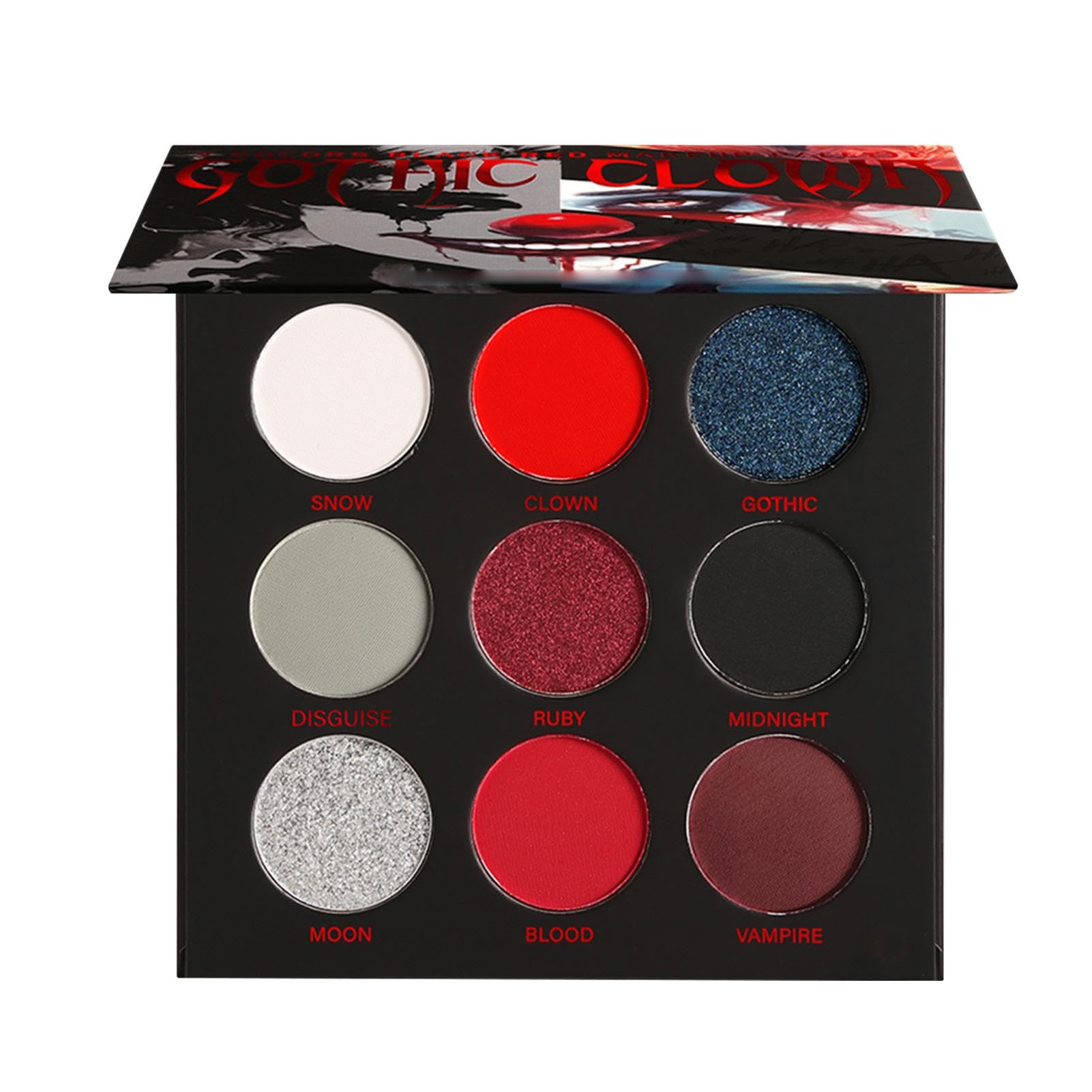 Palette de fards à paupières d'Halloween, palette de fards à paupières noirs et rouges, maquillage gothique, 9 couleurs, punk smoky, fards à paupières hautement pigmentés pour fête d'Halloween