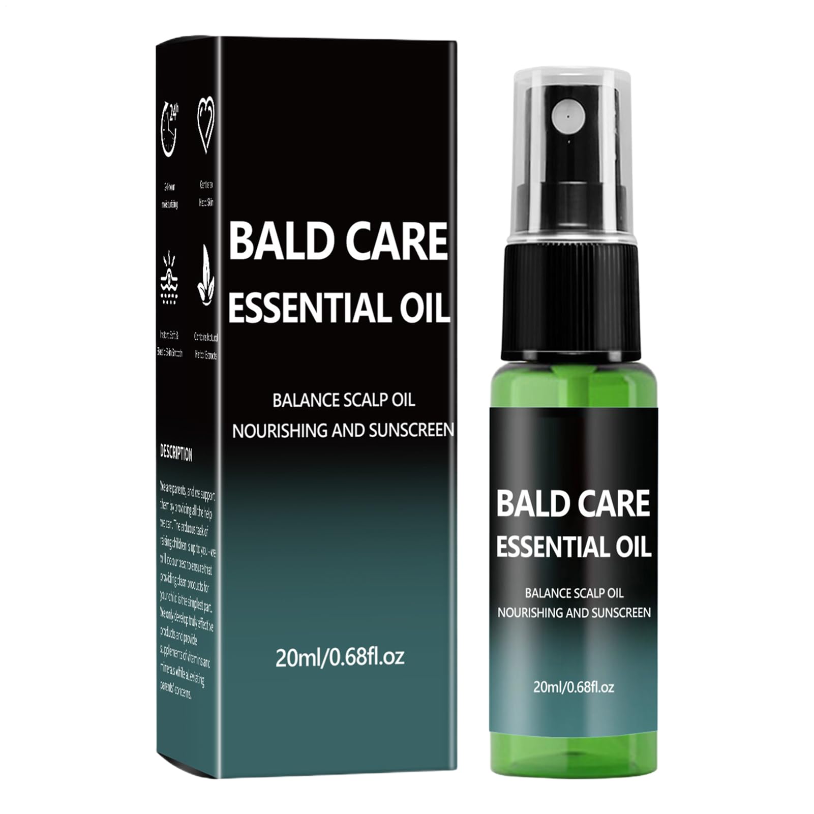 Scalp Stimulating Oil is designed to provide natural restorative and soothing benefits for those seeking improved scalp health. Designed for men, grandfathers, male colleagues, and even female friends, this oil promotes hair follicle strength and combats tension and irritation. Its gentle formula nourishes the scalp, making it suitable for daily use. Whether you're struggling with scalp issues or simply want to maintain a healthy scalp, this oil offers a reliable solution. By incorporating this Scalp Stimulating Oil into your routine, users can experience increased comfort and vitality. The carefully selected ingredients ensure a soothing effect and effectively reduce irritation. Choose a natural approach to scalp care and enjoy the long-term benefits of a healthier foundation for your hair. Features: Net Contents: 20 ml Shelf Life: 3 years Package Contents: 1 Men's Hair Loss Treatment Note: 1. Due to lighting effects and display angles, there may be slight color variations in the product. 2. Please allow for slight variations in size due to manual measurement. Thank you for your understanding. SAFETY WARNING Not applicableLong-term protection and comfort: This men's bald cream creates a soothing sensation on the skin by balancing oil production and reducing dandruff. It prevents discomfort during extended wear, whether at home, in the office, or while traveling. Oil control and freshness: The bald cream gently cleanses away excess oil while maintaining moisture balance, preventing flat, dull hair roots for a revitalized appearance. Its lightweight formula provides a fresh, airy feeling on the scalp, ideal for an active or humid lifestyle where comfort is key. Convenient solution: This men's scalp moisturizer comes in a spray bottle that simplifies application and allows for a one-step scalp routine. Moisture absorption is enhanced by a gentle massage, making it effortless to use in the morning while shaving or after a workout for refreshed, hydrated skin. Ideal for daily care to moisturize the scalp and provide a pleasant feeling on the skin without taking up too much time. Fast-acting hydration: This hair loss treatment provides non-greasy hydration thanks to its rapid penetration, ensuring easy absorption and long-lasting moisture to keep your scalp comfortable all day long. Balanced scalp environment: Formulated with natural plant-based ingredients, this men's hair care treatment strengthens follicles and nourishes the scalp with a gentle effect. It promotes a stable and healthy base that supports an active lifestyle without irritation or discomfort.Baume de soin calvitie pour homme, 50 ml, liquide apaisant végétal Soin du cuir chevelu et apaisant la peau – Renforce les follicules pileux, apaise et raffermitDESCRIPTION DU PRODUIT DESCRIPTION DU PRODUIT L'huile de stimulation du cuir chevelu est conçue pour fournir des avantages naturels réparateurs et apaisants pour les personnes qui recherchent une meilleure santé du cuir chevelu. Conçue pour les hommes, les grands-pères, les collègues masculins et aussi les amies, cette huile favorise la force des follicules pileux et lutte contre les tensions et les irritations. Sa formule douce nourrit le cuir chevelu et le rend adapté à un usage quotidien. Si vous êtes aux prises avec des inconvénients ou si vous voulez simplement maintenir un cuir chevelu sain, cette huile offre une solution fiable. En intégrant cette huile de stimulation du cuir chevelu dans votre routine, les utilisateurs peuvent expérimenter un confort et une vitalité accrus. Les ingrédients soigneusement sélectionnés garantissent un effet apaisant et réduisent efficacement les irritations. Choisissez une approche naturelle des soins du cuir chevelu et profitez des avantages à long terme d'une base plus saine pour vos cheveux. Caractéristiques : Contenu net : 20 ml. Durée de vie : 3 ans. Liste : 1 soin de la calvitie pour homme. Remarque : 1. En raison des effets de lumière et des angles d'affichage, il peut y avoir des différences de couleur dans le produit. 2. Les mesures étant prises à la main, les tailles indiquées peuvent varier légèrement. Merci de votre compréhension. AVERTISSEMENT DE SÉCURITÉ InapplicableProtection et confort à long terme : cette crème chauve pour homme crée une sensation apaisante sur la peau en équilibrant l'équilibre pétrolier et en réduisant les pellicules. Il évite l'inconfort en cas de port prolongé, que ce soit à la maison, au bureau ou en voyage. Contrôle de l'huile et fraîcheur : la crème calvitie nettoie en douceur l'excès de graisse tout en préservant l'équilibre hydrique, prévenant ainsi les racines des cheveux plats et mats pour un aspect revitalisé. Sa formule légère procure une sensation de fraîcheur et d'air sur le cuir chevelu, idéale pour un mode de vie actif ou humide où le confort est essentiel. Solution pratique : cette crème hydratante pour cuir chevelu pour homme dispose d'un flacon pulvérisateur qui simplifie l'application et permet une routine du cuir chevelu en une seule étape. L'absorption de l'humidité est améliorée par un massage doux, ce qui rend l'utilisation sans effort le matin pendant le rasage ou après l'entraînement pour une peau rafraîchie et hydratée. Idéal pour les soins quotidiens pour hydrater le cuir chevelu et offrir une sensation agréable sur la peau sans prendre de temps. Hydratation à action rapide : la solution de soin pour calvitie fournit une hydratation non grasse grâce à sa pénétration rapide, assure une absorption facile et une hydratation prolongée pour garder votre cuir chevelu confortable tout au long de la journée. Environnement équilibré du cuir chevelu : formulé avec des ingrédients végétaux naturels, ce soin chauve pour homme renforce les follicules et nourrit le cuir chevelu grâce à un effet doux. Il favorise une base stable et saine qui favorise un style de vie actif sans irritation ni inconfort.