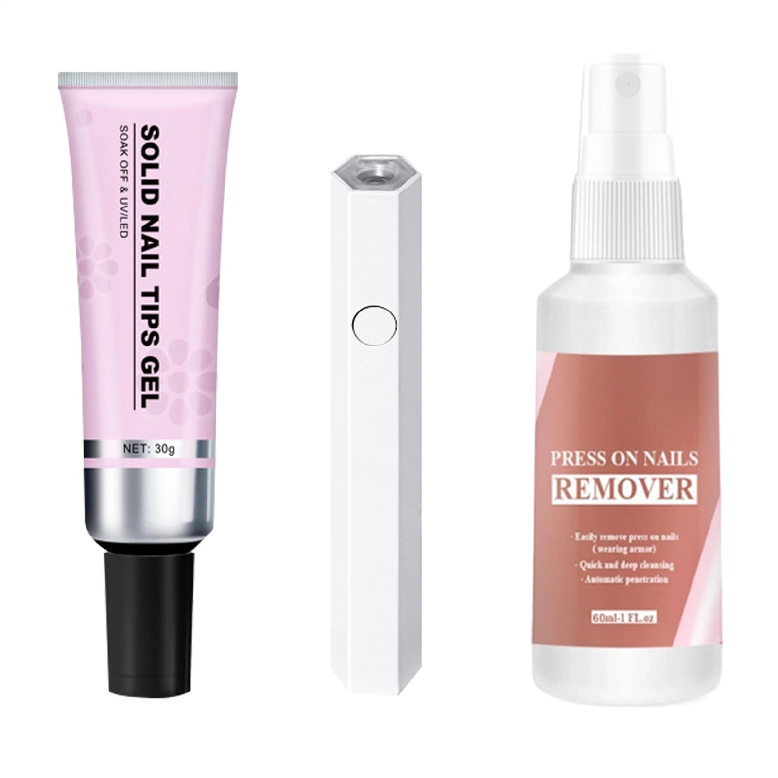 Multifunctional Nail Glue: This solid nail glue gel features a fast-curing formula, allowing for easy removal of press-on nails. It acts as a multifunctional nail glue, improving application speed and the overall user experience. Complete Nail Glue Kit: With the included tools, this solid nail glue gel addresses all your application needs and provides an excellent press-on solution for creating business bonds and delivering consistent performance with minimal effort. Convenient Spray Design: The 30ml spray bottle with an effortless nozzle applicator allows for a 10-second removal process, ensuring seamless application and time-saving results. Convenient Gel Application: Achieve fast results with 360 fast-curing technology, powered by a portable UV lamp. This ensures safe, low-heat application and includes a refillable design for added convenience. Long-Lasting Nail Solution: Enjoy a safe and reliable product.