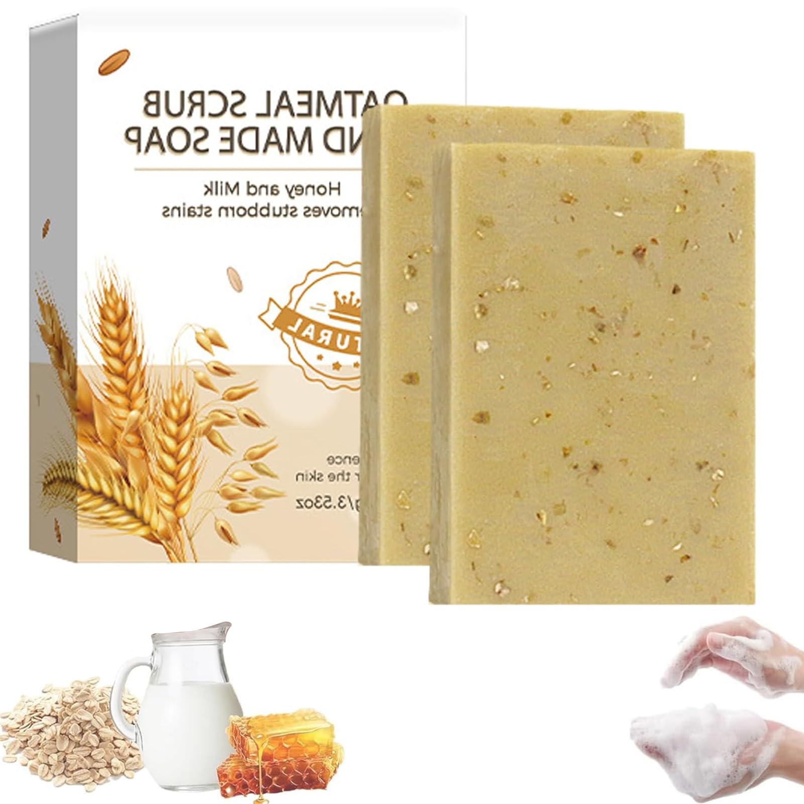 : Specifications: Name: Soap Net Weight: 100 g Shelf Life: 3 years Suitable for all skin types Package Contents: 1 2 3 pieces Handmade vegetable soap with oat oil Usage Instructions: 1. Due to manual measurement, sizes may vary by 0-1 cm. Please only order if you accept this margin of error. 2. The color of the item may vary from the picture due to differences in monitor settings and brightness. Thank you for your understanding. Safety Instructions: None SAFETY WARNING No