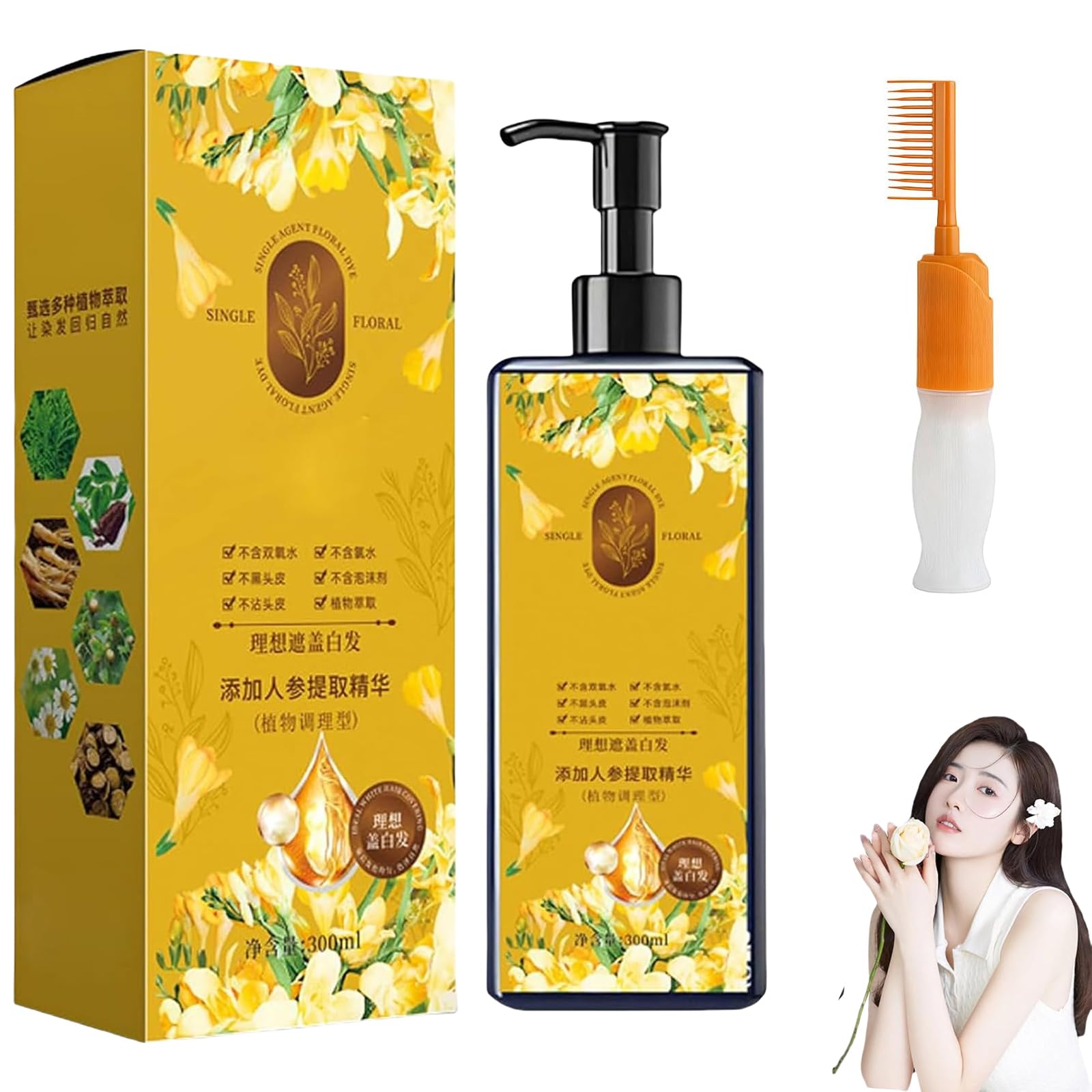 : Achieve vibrant, natural-looking hair color with this nourishing plant-based hair dye. Made from gentle plant ingredients, this hair color not only delivers rich, long-lasting color but also cares for your hair with every use. Ideal for anyone looking for a more natural alternative to traditional chemical dyes. Product Features: Product Name: Nourishing Plant-Based Hair Dye Available Colors: 01 Natural Black 02 Dark Brown 03 Chestnut Brown Net Contents: 300 ml Shelf Life: 3 years Package Contents: 1 Nourishing Plant-Based Hair Dye 1 Applicator Brush Important Notes: For external use only - Do not swallow. Avoid contact with eyes - In case of contact, rinse immediately and thoroughly with water. SAFETY WARNING NO