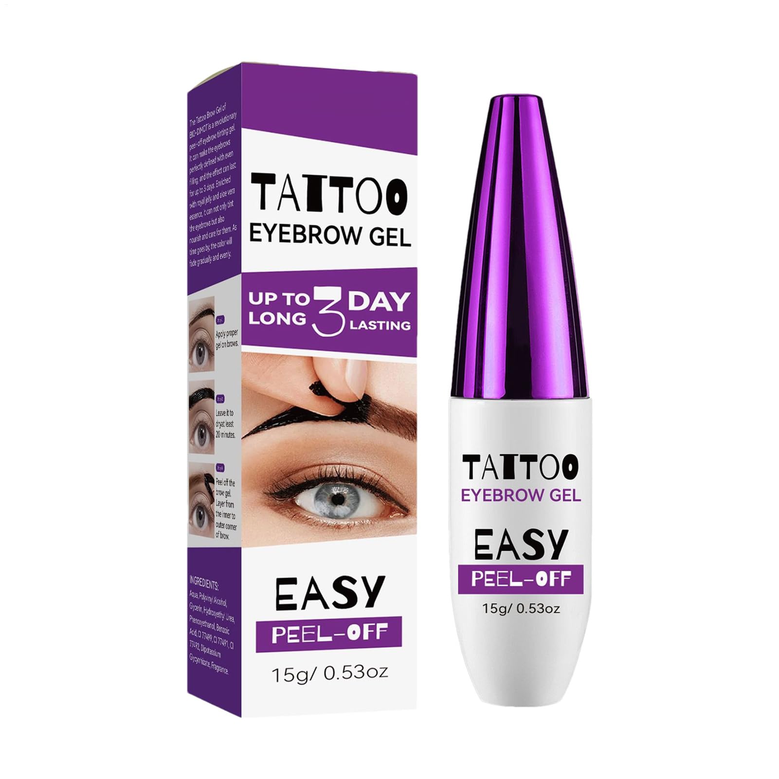 DESCRIPTION DU PRODUIT Obtenez des sourcils imperméables qui durent toute la journée avec notre teinte à sourcils Peel-Off. Cette formule anti-salissures est idéale pour les sourcils clairsemés ou fins et offre une définition naturelle sans décoloration Avantages de la coloration des sourcils : La couleur durable offre des sourcils naturellement teintés qui durent des jours. Résistant à la saleté et à l'eau, reste sans décoloration ni taches. Facile à appliquer et à enlever - Formule Peel-Off facile pour une utilisation sans problème. Caractéristiques du produit : Spécification : 15 g Durée de vie : 3 ans. Dimensions du produit : environ 2,3 x 9,67 cm. Remarques : 1. En raison des effets d'éclairage et de l'angle de prise de vue, le produit peut avoir une différence de couleur. Merci de votre compréhension. 2. Les mesures étant prises à la main, les tailles indiquées peuvent varier légèrement. Liste des produits : 1 teinture des sourcils