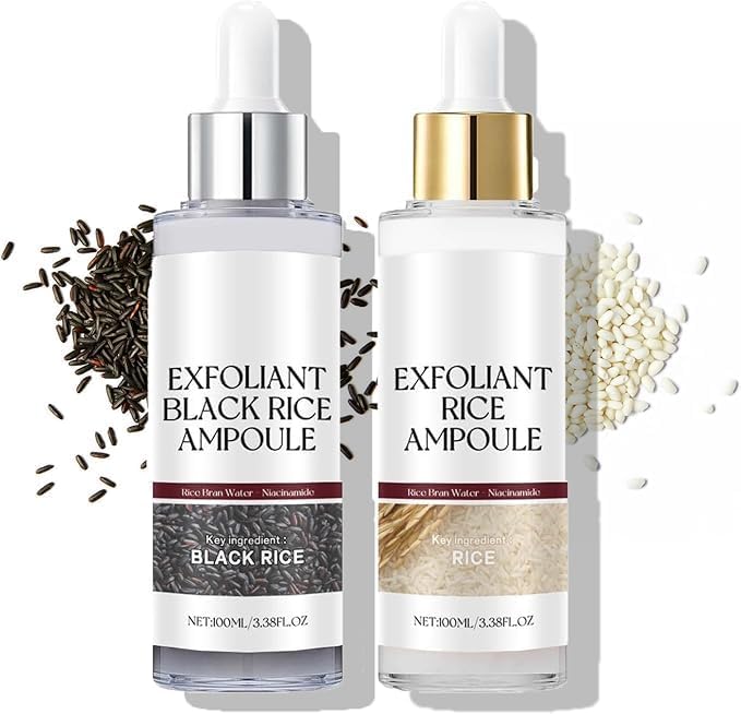 Benefits of Rice Extract : Contains nutrient-rich rice extracts known for their brightening and smoothing properties. Deep cleansing: Helps open clogged pores and remove impurities while maintaining the skin's natural moisture balance. Dual Ampoule Kit : Includes white and black rice ampoules for complete skincare and exfoliation. Multi-Purpose : Can be used on both the face and body, making it a complete skincare solution. Gentle Exfoliation : Effectively removes dead skin cells and blackheads, and is suitable for all skin types.