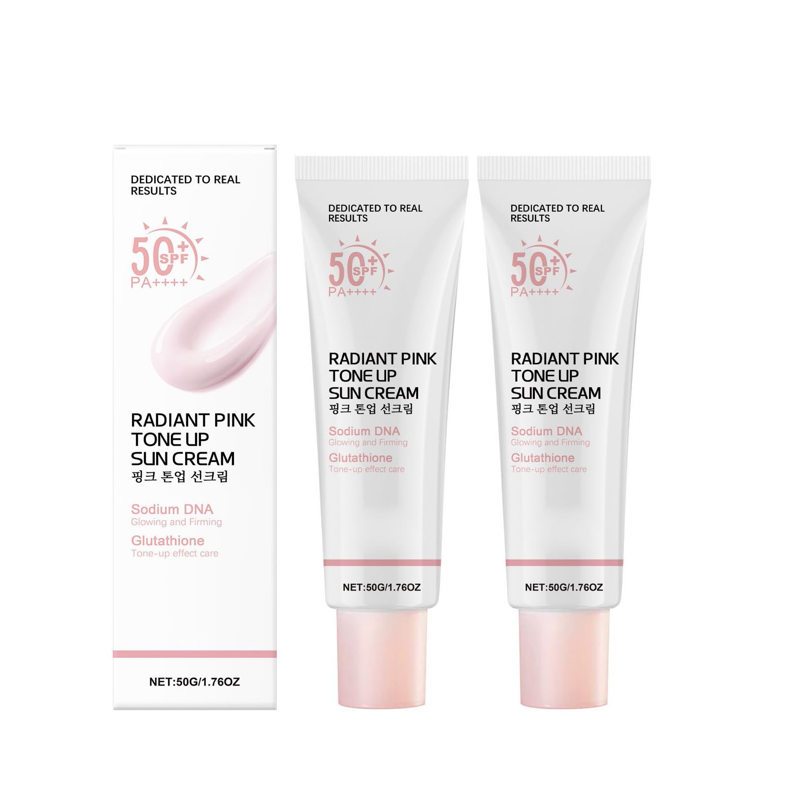 Suitable for all skin tones: The universally flattering pink tint enhances natural skin tones, making our SPF 50 facial sunscreen a perfect base for makeup. No white cast, no clumps, and no stinging for a flawless, irritation-free finish. Waterproof and long-lasting: The waterproof formula resists heat, sweat, and humidity, providing reliable protection all day long—perfect for outdoor activities or beach vacations. Highly effective sun protection: With broad-spectrum UVA UVB protection, this sunscreen shields your skin from the sun's harmful rays and helps prevent premature aging. Ideal for everyday use, whether outdoors or at the office. Pink Tone-Up Sunscreen: Our SPF 50 Tone-Up Sunscreen delivers a taupe glow and essential SPF 50 PA protection with a unique serum-like texture for radiant, hydrated skin. All-day hydration: a blend of watercolor-rich essence and Glow-up pink technology from our Factor 50 brightening sunscreen that hydrates all day without feeling greasy and leaves a natural glow.