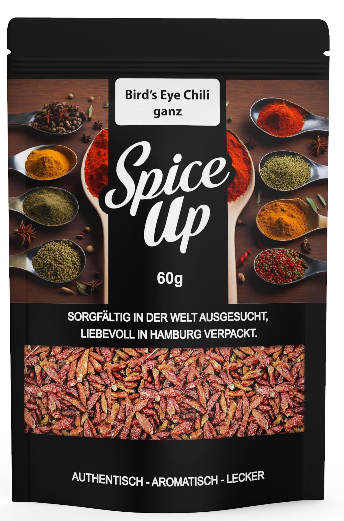 Spice Up Bird's Eye Chili 60g – Dried chilies for true spice lovers. Our Bird's Eye chili pods are particularly small but extremely hot – ideal for anyone who likes their dishes fiery. Whether you enjoy Asian cuisine, African seasoning, or Indian masala, these dried chilies are a versatile companion. Known as Thai chili, bird's eye chili, or African chili, this variety is a must-have in your kitchen. 100 natural, additive-free, and in a convenient 60g pack for maximum enjoyment and long shelf life. ________________________________________________________ Why Spice Up Bird's Eye Chili all the way: Extra spicy chilies – intense and fruity in taste Ideal for Thai curries, chili oil, Indian masalas and African sauces Dried, completely and without artificial flavors, packaged in a 60g bag Vegan, with no artificial additives or colors Tested in Germany processed - Premium Spice ________________________________________________ Examples of using Spice Up Bird's Eye Chili: Thai and wok dishes: fry or cook chili pods in oil for curries, soups and stir-fries. Indian African Cuisine: Pounded or whole in Masalas, Dal, Vindaloo, or Piri-Piri – for authentic and intense seasoning. Homemade Chili Oils and Spice Blends: Infuse chilies in oil or grind them with other spices – makes fiery chunks and salad dressings. Marinades and Sauces: Turn into a hot paste with lime, garlic, and spices – perfect with meat, fish, or vegan foods. ________________________________________________________ Spice Up Bird's Eye Chili – For anyone looking for true zest. Order now and make your kitchen shine. Typical uses for Bird's Eye Chili: 1. Thai and Asian wok cooking: For pad thai, green curries, or spicy noodles. 2. Indian Masalas: Perfect for vindaloo, tikka, dal, or spicy chutneys. 3. African dishes: For harissa, piri-piri, or spicy rice. 4. Spice blends and sharp clumps: perfect for mortar and pestle and for mixing with salt, garlic, and cumin. 5. Chili oil and infusions: infuse with garlic in oil – as a topping for pizza or pasta. 6. DIY gifts and spice jars: as a highlight in gift boxes or decorative jars. INGREDIENTS FlakesSpice Up Bird's Eye Chili tout 60 g – Bird's Eye Chili Whole 60 g – Piments extra épicés séchés et naturels – Pour cuisine asiatique, indienne et africaine – Aromatique sans additifsDESCRIPTION DU PRODUIT DESCRIPTION DU PRODUIT Spice Up Bird's Eye Chili tout 60 g – Piments séchés pour les vrais fans de piquant. Nos gousses de piment Bird's Eye sont particulièrement petites mais extrêmement tranchantes – Idéal pour tous ceux qui aiment leurs plats fougueux. Que vous aimiez la cuisine asiatique, l'assaisonnement africain ou le masala indien, ces piments séchés sont un compagnon polyvalent. Connu sous le nom de piment thaï, piment pour les yeux des oiseaux ou piment africain, cette variété est un must pour votre cuisine. 100 naturel, sans additifs et dans un paquet pratique de 60 g pour un maximum de plaisir et une longue durée de vie. ________________________________________________________ Pourquoi Spice Up Bird's Eye Chili tout au long : Piments extra épicés – intense et fruité au goût Idéal pour les currys thaïlandais, l'huile de piment, les masalas indiens et les sauces africaines Séché, entièrement et sans arômes emballés dans un sachet de 60 g Vegan, sans additifs artificiels ni colorants Testé en Allemagne traité - Spice Qualité supérieure ________________________________________________ Exemples d'utilisation du piment Spice Up Bird's Eye Chili : Plats thaïlandais et wok : faire frire ou cuire des gousses de piment dans l'huile pour des currys, des soupes et des plats de poêle. Cuisine Indienne Africaine : pilée ou entièrement à Masalas, Dal, Vindaloo ou Piri-Piri - pour un assaisonnement authentique et intense Huiles de piment maison et mélanges d'épices : mettre les piments dans l'huile ou les broyer avec d'autres épices – donne des morceaux de feu et des vinaigrettes. Marinades et sauces : transformez en une pâte piquante avec du citron vert, de l'ail et des épices - parfaite avec de la viande, du poisson ou des aliments végétaliens. ________________________________________________________ Spice Up Bird's Eye Chili – Pour tous ceux qui recherchent une vraie netteté. Commandez dès maintenant et faites briller la cuisine. Utilisations typiques du piment Bird's Eye Chili : 1. Wok de cuisine thaïlandaise et asiatique : pour pad thaï, currys verts ou noodles épicés. 2. Masalas indiens : parfait pour le vindaloo, le tikka, le dal ou les chutneys épicés. 3. Plats africains : pour harissa, piri piri ou riz épicé. 4. Mélanges d'épices et de grumeaux tranchants : parfaits pour mortier et mélanger avec du sel, de l'ail et du cumin. 5. Huile de piment et infusions : laisser infuser avec de l'ail dans l'huile - comme garniture pour pizza ou pâtes. 6. Cadeaux et pots à épices DIY : comme point fort dans les boîtes cadeaux ou les bocaux décoratifs. INGRÉDIENTS Flocons