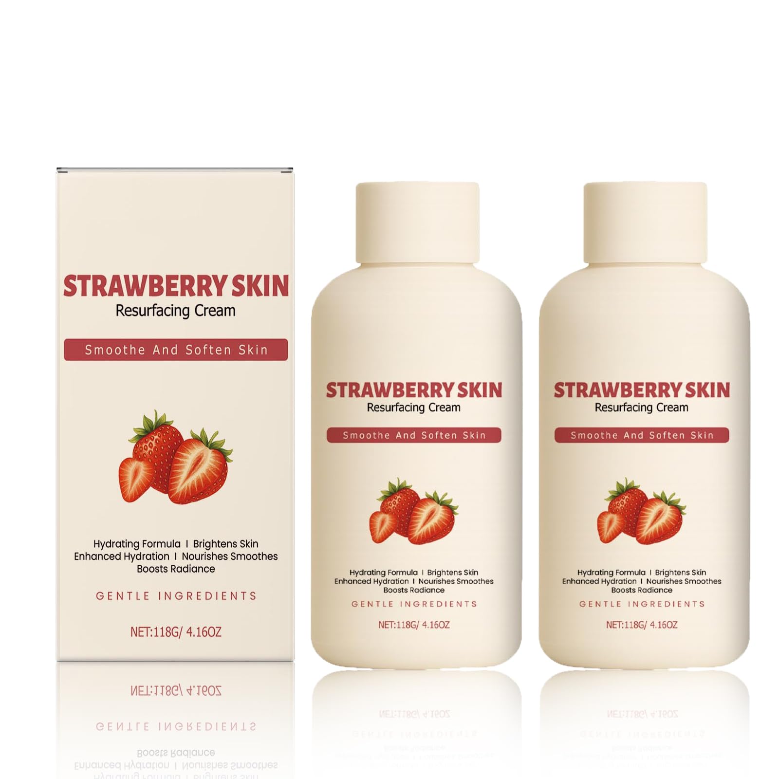 Welcome to our shop. Dear customer, welcome! : Strawberry Moisturizing Cream is a skincare product specially formulated for smooth, healthy-looking skin. It provides long-lasting hydration, refines skin texture, and leaves a pleasant feeling on the skin – without a greasy residue. Ideal for strawberry skin, keratosis pilaris, and rough patches, it intensely nourishes and makes the skin visibly more even-toned. How to use: Apply a small amount of cream to cleansed skin. Gently massage until fully absorbed. Use daily, morning and evening, especially on dry or rough areas of the skin. Product Features: Deep hydration: Intensely moisturizes dry skin for a smooth, healthy complexion. Targeted skin care: Works against keratosis pilaris, strawberry skin, and rough patches, effectively reducing irregularities. Gentle formula: Suitable for all skin types, absorbs quickly, and leaves no greasy residue. Technical specifications: Name: Strawberry Moisturizing Cream Net weight: 118 g Shelf life: 3 years Storage: Store in a cool, dry place, away from direct sunlight. Packing list: 1 2 3 x Strawberry Moisturizing Cream Suitable for: Ideal for all skin types, especially dry and rough skin. Perfect for arms, legs, and uneven body areas, for daily care and skin renewal. SAFETY WARNING NOGentle and effective formula: This skincare cream combines exfoliating and moisturizing effects in one product, leaving skin feeling soft and even with daily use. Suitable for all skin types: The gentle formula can be used on arms, legs, and other parts of the body. Perfect for sensitive, dry, or normal skin. Daily use for smooth skin: Acts as a gentle chemical exfoliant, reducing clogged pores and imperfections, refining skin texture, and visibly improving skin tone. Targeted care for rough skin: Perfect for dry and uneven skin. Its rich formula intensely moisturizes, smooths the skin, and makes it visibly more supple. Strawberry moisturizing cream: This specially formulated skincare cream intensely hydrates the skin, improves its texture, and gives it a smooth complexion without a greasy feel.Crème resurfacante hydratante à la fraise - Hydratation longue durée - Réduit la peau de poulet - Raffine les pores - Non grasse (2 pièces, 236 g) 2 pièces. 118 g (1er Pack)DESCRIPTION DU PRODUIT DESCRIPTION DU PRODUIT Bienvenue dans notre boutique. Cher client, bienvenue ! Description du produit : La crème hydratante à la fraise est un soin de la peau spécialement conçu pour une peau lisse et soignée. Elle hydrate durablement, affine la structure de la peau et procure une sensation agréable sur la peau – sans film gras. Idéal pour la peau de fraise, la kératose pilaire et les zones rugueuses de la peau, elle nourrit intensément et rend la peau visiblement plus uniforme. Comment l'utiliser : Appliquez une petite quantité de crème sur une peau nettoyée. Masser doucement jusqu'à absorption complète. Utiliser quotidiennement matin et soir, en particulier sur les zones sèches ou rugueuses de la peau. Caractéristiques du produit : Hydratation en profondeur : hydrate intensément les peaux sèches pour un teint lisse et soigné. Soin ciblé de la peau : agit contre la kératose pilaire, la peau de fraise et les zones rugueuses, réduit efficacement les irrégularités. Formule douce : convient à tous les types de peau, pénètre rapidement et ne laisse pas de film gras. Caractéristiques techniques : Nom : crème hydratante aux fraises Contenance : 118 g Durée de vie : 3 ans. Stockage : conserver dans un endroit frais et sec, à l'abri de la lumière directe du soleil. Liste de colisage : 1 2 3 x crème hydratante à la fraise Convient pour : Idéal pour tous les types de peau, en particulier les peaux sèches et rugueuses. Parfait pour les bras, les jambes et les parties du corps irrégulières, pour les soins quotidiens et le renouvellement de la peau. AVERTISSEMENT DE SÉCURITÉ NOFormule douce et efficace : la crème de soin combine un effet exfoliant et hydratant en un seul produit, pour une sensation douce et uniforme sur la peau lors d'une utilisation quotidienne. Convient à tous les types de peau : la formule douce peut être utilisée sur les bras, les jambes et d'autres parties du corps. Parfait pour les peaux sensibles, sèches ou normales. Utilisation quotidienne pour une peau lisse : agit comme un exfoliant chimique doux : réduit les pores obstrués et les irrégularités, affine la texture de la peau et embellit visiblement le grain de la peau. Soin ciblé pour les peaux rugueuses : parfait pour les peaux sèches et irrégulières. Sa formule riche hydrate intensément, lisse la peau et la rend visiblement plus souple. Crème hydratante à la fraise : cette crème de soin spécialement conçue hydrate intensément la peau, améliore sa structure et lui donne un teint lisse, sans sensation grasse.