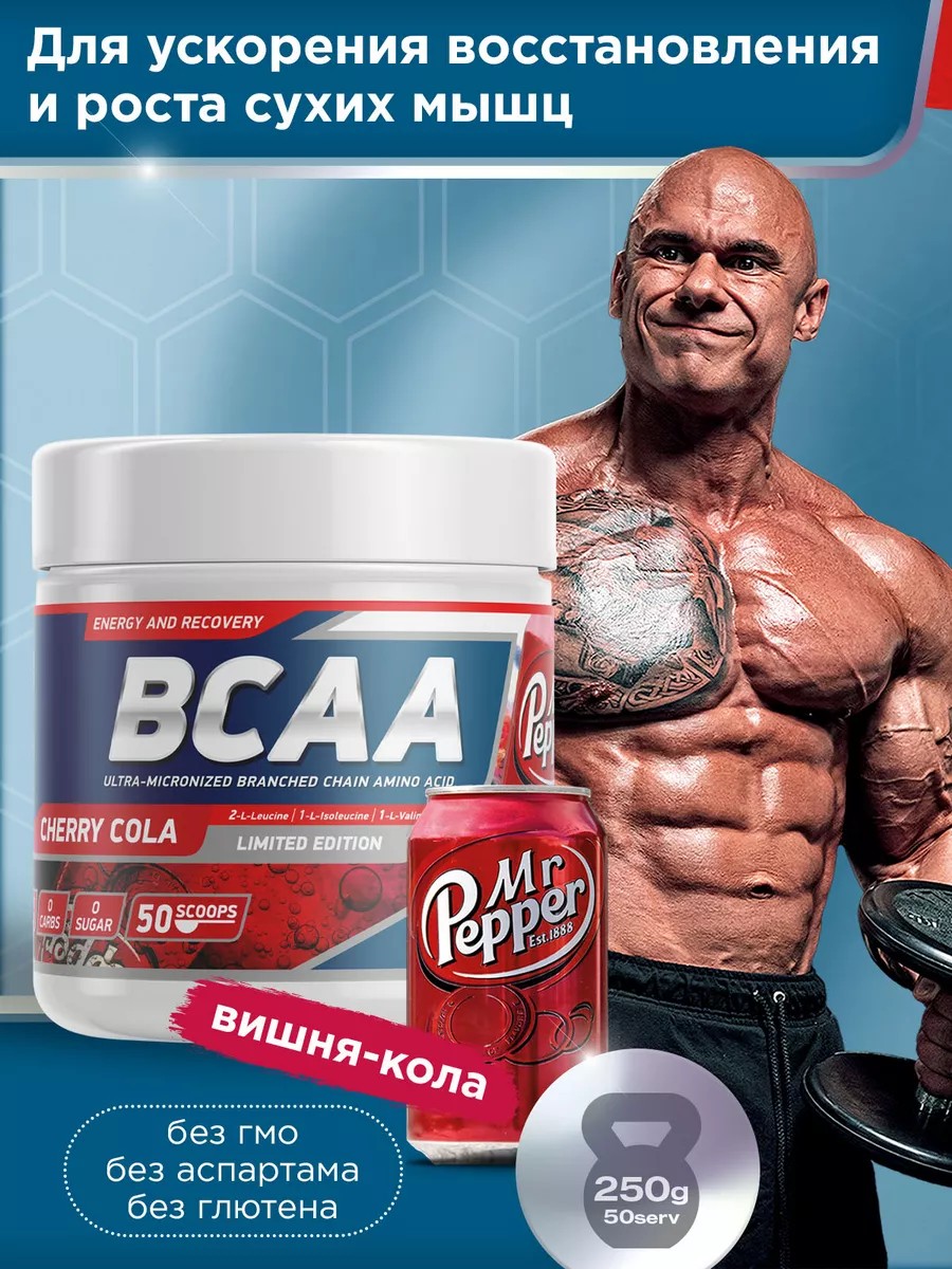 BCAA ; является высококачественной спортивной пищевой добавкой, в состав которой входят аминокислоты с разветвленными боковыми цепочками (BCAA), в оптимальном соотношении 2:1:1. Препараты, содержащие аминокислоты с разветвленными боковыми цепочками, широко применяются атлетами, особенно силовых видов спорта. BCAA обеспечит энергией, улучшит обмен веществ, защитит мышцы от катаболизма и поможет избавиться от лишнего жира. Ваши тренировки станут интенсивнее и эффективнее.