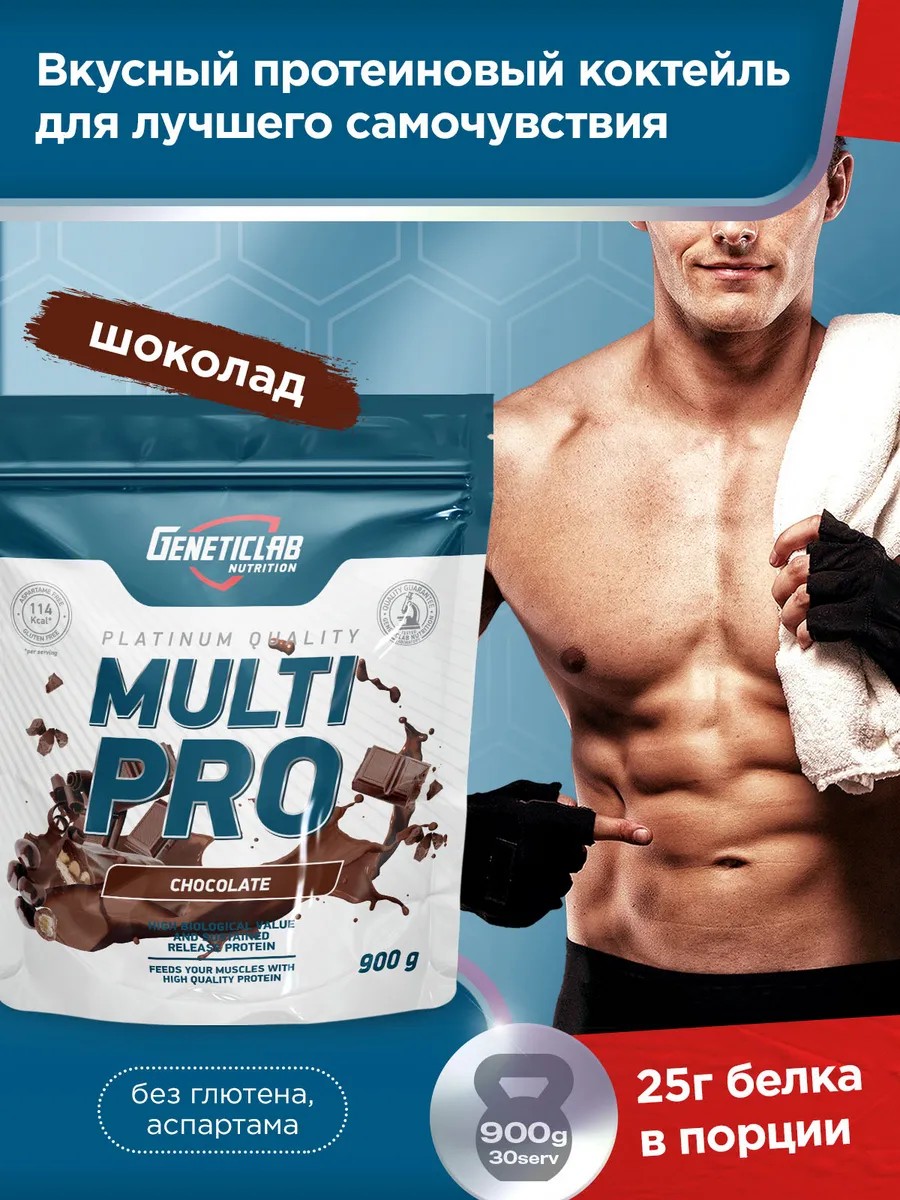 Многокомпонентный протеин Multi Pro от GeneticLab можно использовать в течение всего дня для поддержания мышечного роста. Формула сформирована из источников белка животного происхождения. Каждая порция протеина удовлетворит потребности организма в 25 граммах белка из концентратов сывороточного, молочного и соевого. Вы сможете насытить свои мышцы максимальной концентрацией аминокислот, в том числе BCAA, а также других питательных веществ, необходимых для поддержания высокой мышечной активности. Особенно это важно для активно тренирующихся людей, у которых потребности в питательных веществах более высокая по сравнению с людьми, ведущими размеренный образ жизни.За счет использования нескольких источников белка достигается пролонгированное их усвоение, поскольку некоторые из представителей характеризуются более крепкими молекулярными связями и требуют большего времени на расщепление.