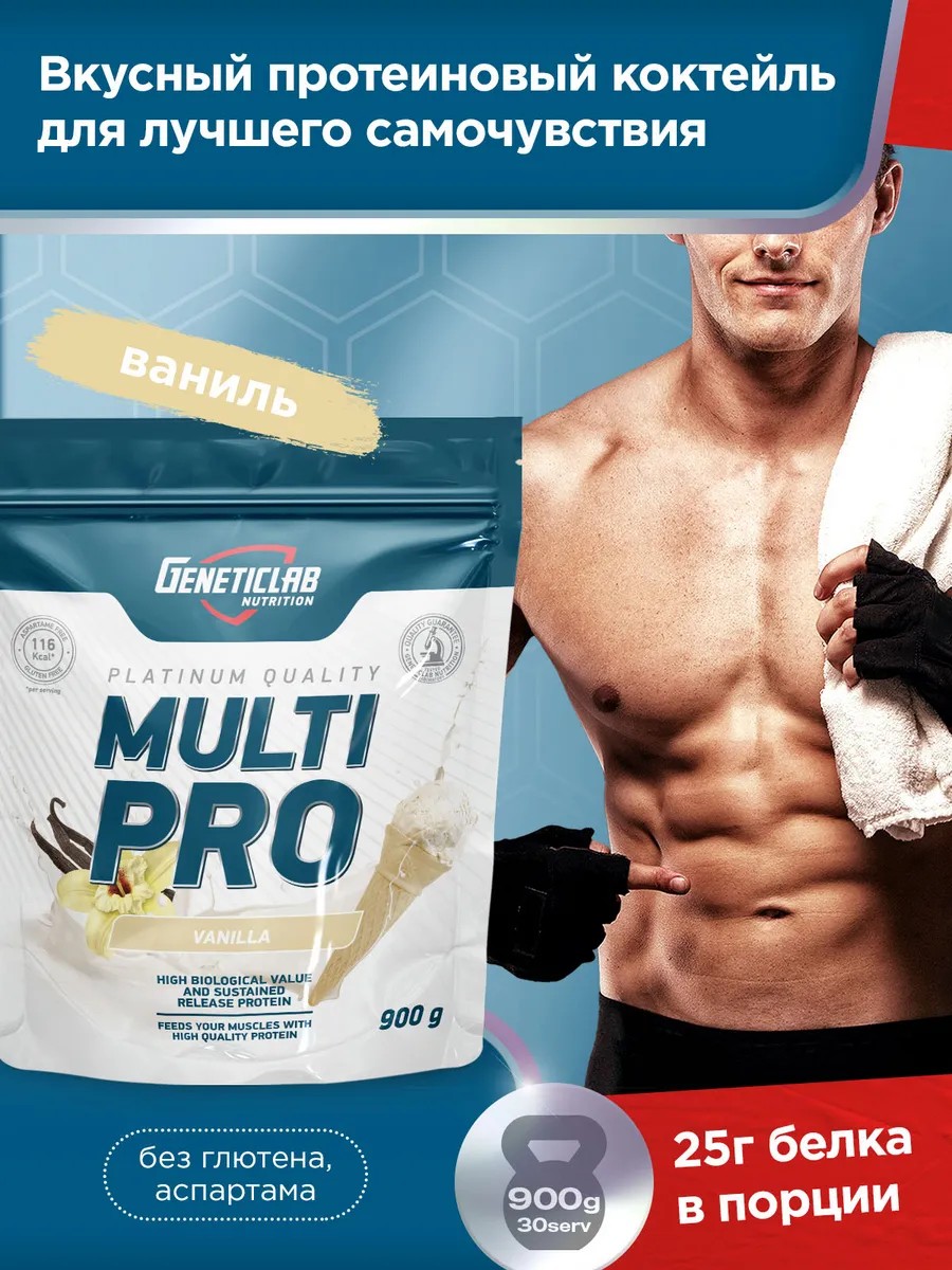 Многокомпонентный протеин Multi Pro от GeneticLab можно использовать в течение всего дня для поддержания мышечного роста. Формула сформирована из источников белка животного происхождения. Каждая порция протеина удовлетворит потребности организма в 25 граммах белка из концентратов сывороточного, молочного и соевого. Вы сможете насытить свои мышцы максимальной концентрацией аминокислот, в том числе BCAA, а также других питательных веществ, необходимых для поддержания высокой мышечной активности. Особенно это важно для активно тренирующихся людей, у которых потребности в питательных веществах более высокая по сравнению с людьми, ведущими размеренный образ жизни.За счет использования нескольких источников белка достигается пролонгированное их усвоение, поскольку некоторые из представителей характеризуются более крепкими молекулярными связями и требуют большего времени на расщепление.