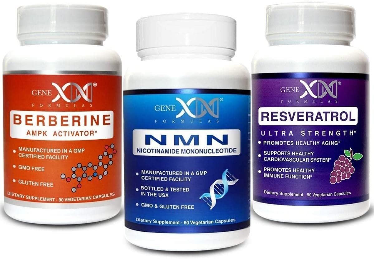 GENEX NMN Resveratrol and Berberine Power Pack Supplements | 250mg Nicotinamide Mononucleotide (NMN) Ultra Strength 500mg Resveratrol & AMPK Activator Berberine 500mg for Healthy Aging (3 Bottles)