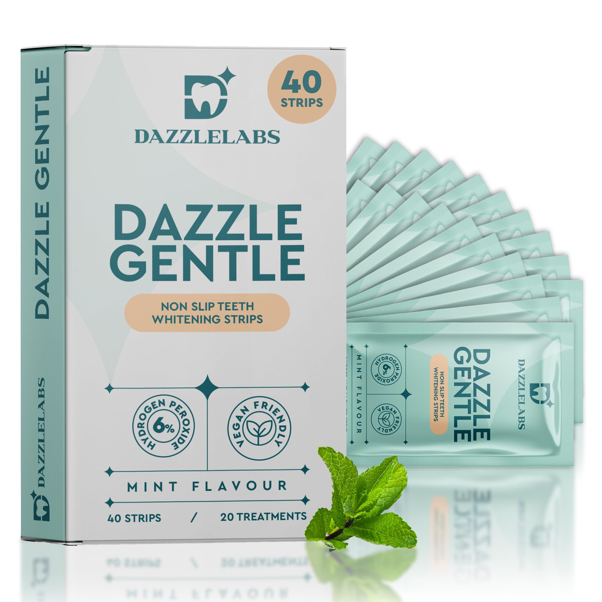 Dazzle Labs Gentle Teeth Whitening Strips | Mint Flavor | Gentle 6% Hydrogen Peroxide