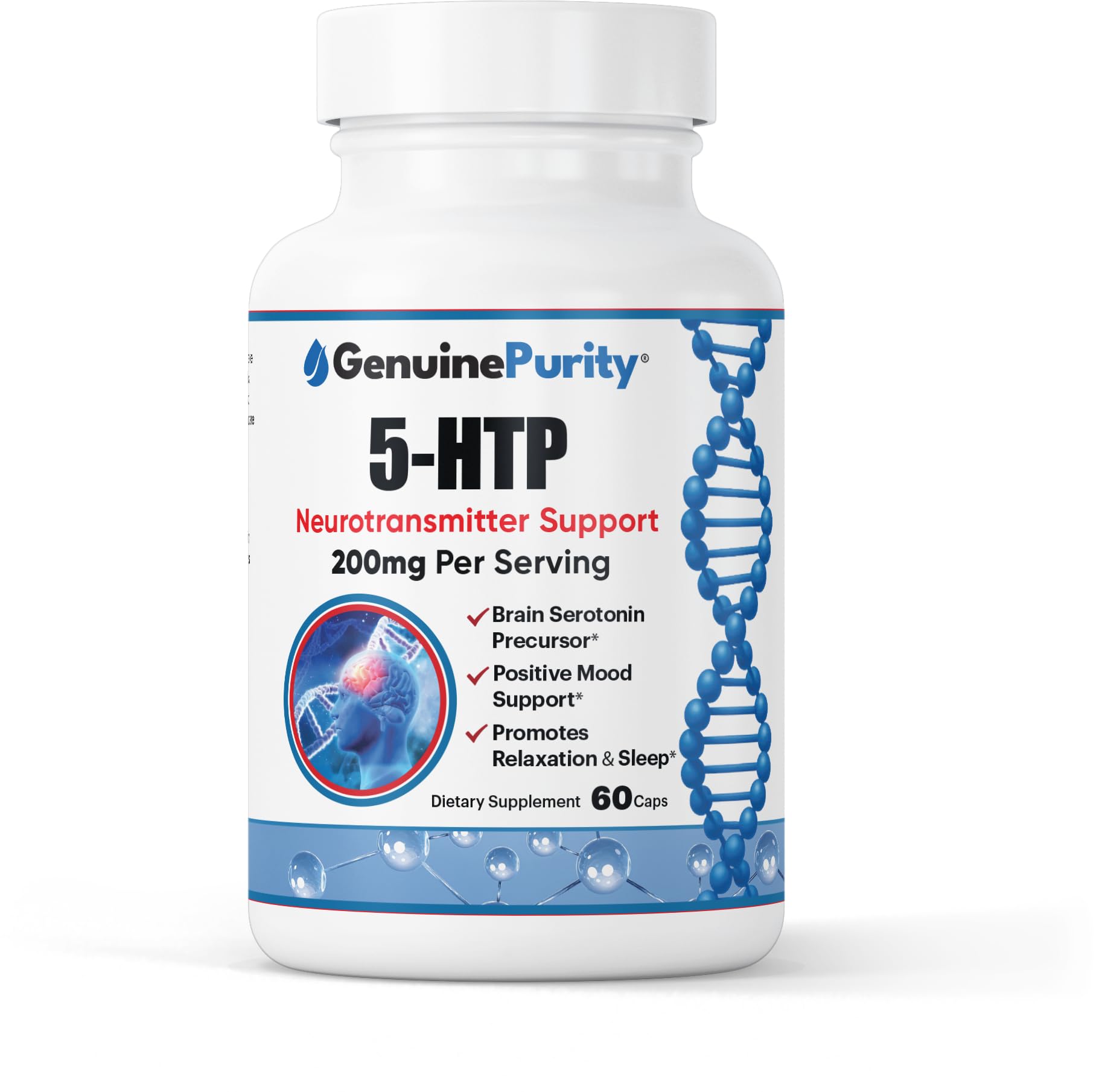 GenuinePurity 5-HTP provides 200mg of plant-based 5-Hydroxytryptophan sourced from Griffonia simplicifolia seed to support general wellness and nutritional balance. Designed for daily use, this supplement fits easily into a consistent, health-focused routine. Formulated with a clean and simple ingredient list, it includes calcium and a vegetable-based capsule without artificial colors, fillers, or unnecessary additives. Vegan, gluten-free, and non-GMO, it is suitable for a wide range of dietary preferences. Manufactured in cGMP-certified facilities in the USA, GenuinePurity 5-HTP is crafted with quality and consistency in mind for dependable daily supplementation.