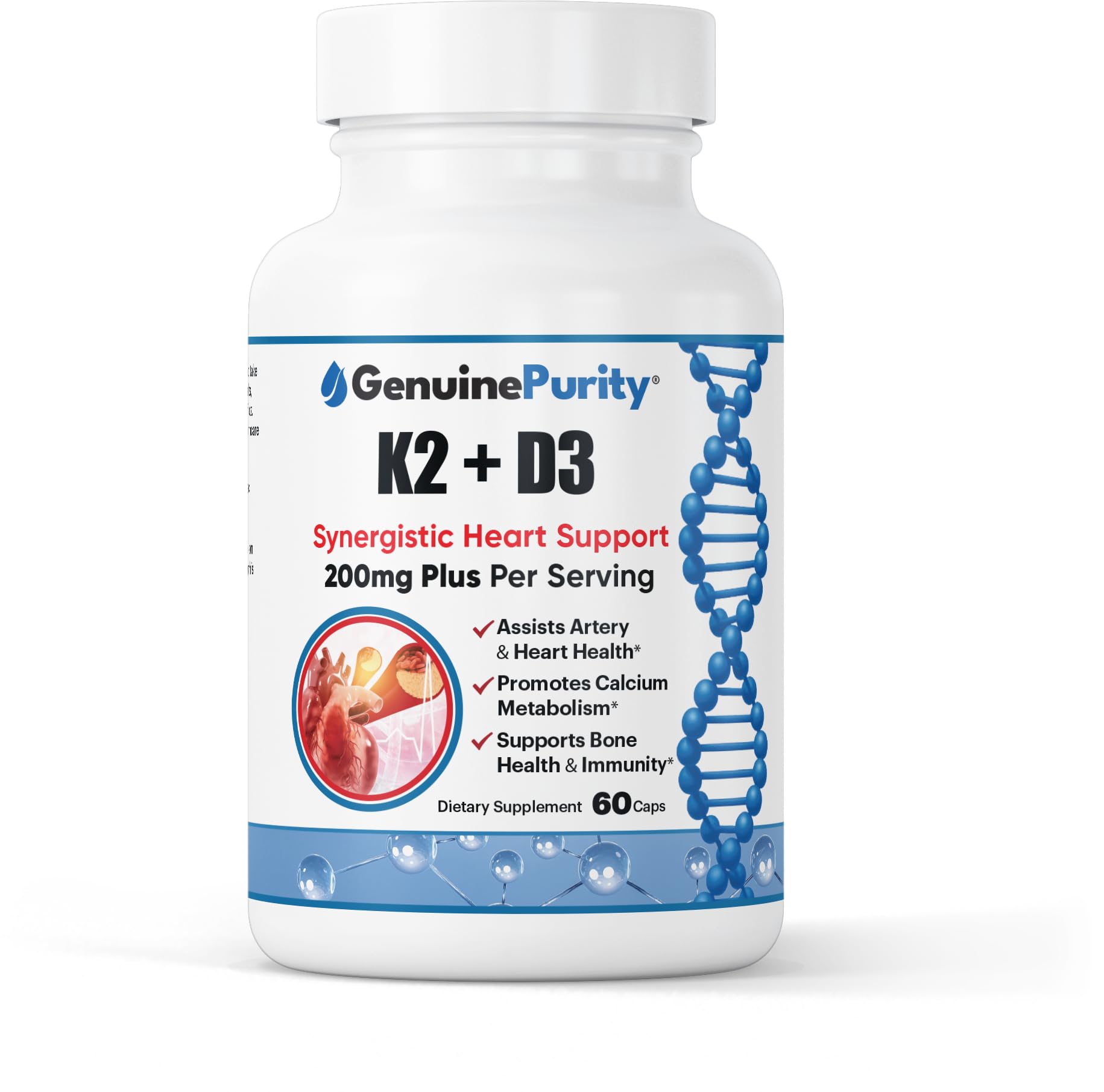 GenuinePurity - D3 K2 Vitamin Supplement with BioPerine - Supports Bone Strength Calcium Utilization & Immune Health - Liposomal Encapsulated Formula for Enhanced Absorption