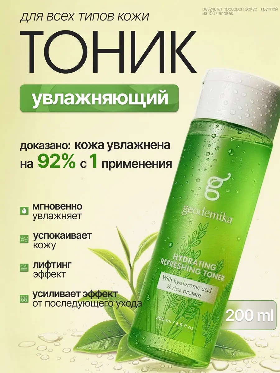 Тоник от Geodemika освежает и активно очищает лицо, подготавливает его для нанесения косметических средств, нормализует PH, обеспечивает интенсивное увлажнение и естественное сияние. Натуральный природный состав с алоэ вера, гиалуроновой кислотой, протеинами риса, гидровансом, гидролатами и 6 натуральными экстрактами сделал это средство идеальным решением для всех женщин! Продукт устраняет повышенную сухость и раздражения, которые могут образоваться в следствие негативных внешних факторов – солнца, низкой влажности. Прекрасно подойдет для сухой женской кожи, а также для нормальной, возрастной, чувствительной и проблемной. Как и любой тоник для лица корея активно очищает. В том числе для тех, кто страдает от морщин, пигментных пятен, акне, постакне, пигментации, больших прыщей, маленьких прыщиков, черных точек и других несовершенств в разных зонах и областях. Идет в виде прозрачной жидкости, которая эффективно устраняет остатки декоративной и уходовой косметики и очищает поры. Тоник для лица очищающий восстанавливает нормальную работу сальных желез и водный баланс, как корейский тоник. Обеспечивает питание и защиту от обезвоживания, перепада температур, солнца, обветривания. Успокаивающий тонизирующий тоник помогает уменьшить шелушения, убрать стягивание и поможет маскировать пигментацию. Содержание антиоксидантов уменьшают процесс разрушения липидного барьера, улучшая состояние кожного покрова, включая пигмент. Косметический продукт эффективно борется против покраснений, благодаря эффекту быстрого действия, подходит для ежедневного использования. Средство для ухода возвращает стойкость, упругость, эластичность, мягкость, нежность и оказывает лифтинг эффект на эпидермис.