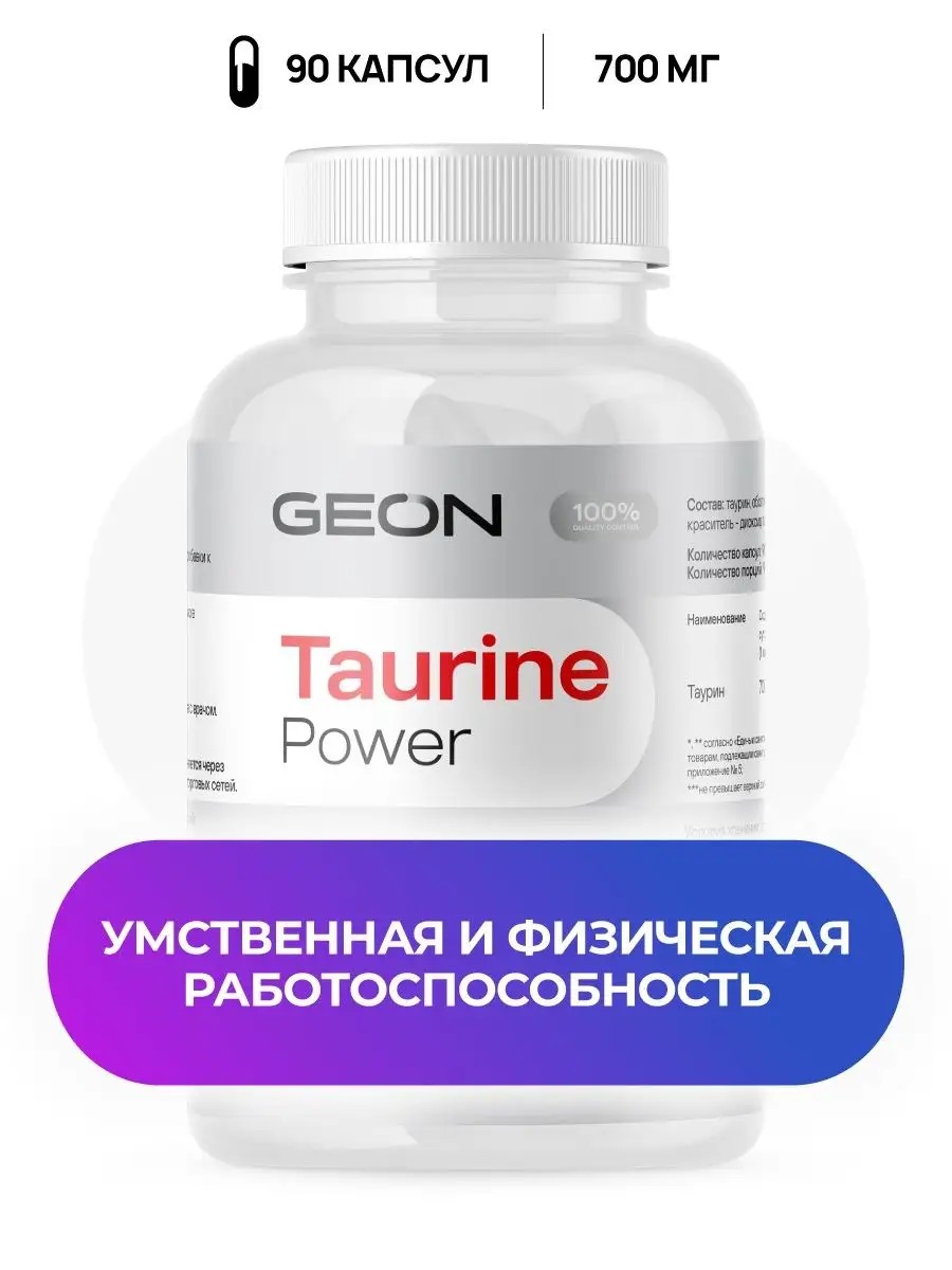 Taurine stores can also be replenished by taking special supplements containing taurine, such as GEON Taurine Power.