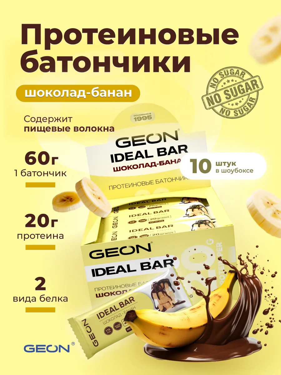 Спортивные батончики содержат большое количество белков и минимально возможное количество углеводов, поэтому представляют особый интерес для спортсменов и людей, ведущих активный образ жизни.Функция высокопротеиновых спортивных батончиков — в кратчайшие сроки снабдить организм человека строительными материалами для ремонта мышечных тканей, которые активно повреждаются во время интенсивных физических нагрузок и процессов роста мышц. Белки — наиболее дефицитный и ценный компонент в рационе питания человека. В составе батончиков, может присутствовать целый набор различных видов белков, обладающих разным временем усвоения.Спортивные батончики «Idealbar» компании ГЕОН содержат концентрат сывороточного белка, быстро усваиваемый организмом, одновременно с концентратом молочного белка, скорость переваривания которого намного ниже. По содержанию незаменимых аминокислот состав белковой фракции батончика приближен к идеальному, рекомендуемому в настоящее время нутрициологами. Общее содержание белковых компонентов в составе батончика превышает 33% на 100 г продукта. В состав батончиков «Idealbar» входят два вида клетчатки — кукурузное волокно и клетчатка пшеничная (пребиотики), а также изомальтолигосахарид и лецитин.Батончики «Idealbar» представлены во множестве разных вкусов: шоколадный, ванильный, фруктовый (кокос, банан и др.) и ягодный (черничный, земляничный, клюквенный и т.п.).«Idealbar» — это концентрированный источник питания, готовый к употреблению, что делает тот продукт удобным для быстрого перекуса во время тренировки или питания в походах.Это также удобное решение в обстоятельствах, когда нет возможности помыть руки перед приемом пищи.Способ применения: Можно употреблять в любое время. Хорошо подходит для правильного перекуса и утоления голода . Хорошо восполняет потраченную энергию и восстанавливает силы после физической нагрузки и занятий спортом.Противопоказания: индивидуальная непереносимость компонентов продукта, беременным и кормящим женщинам. Перед применением проконсультируйтесь со специалистом.Примечание:Условия хранения: хранить в закрытом состоянии в сухом, прохладном месте при температуре от +4 до 25 С. Срок реализации указан на упаковке.