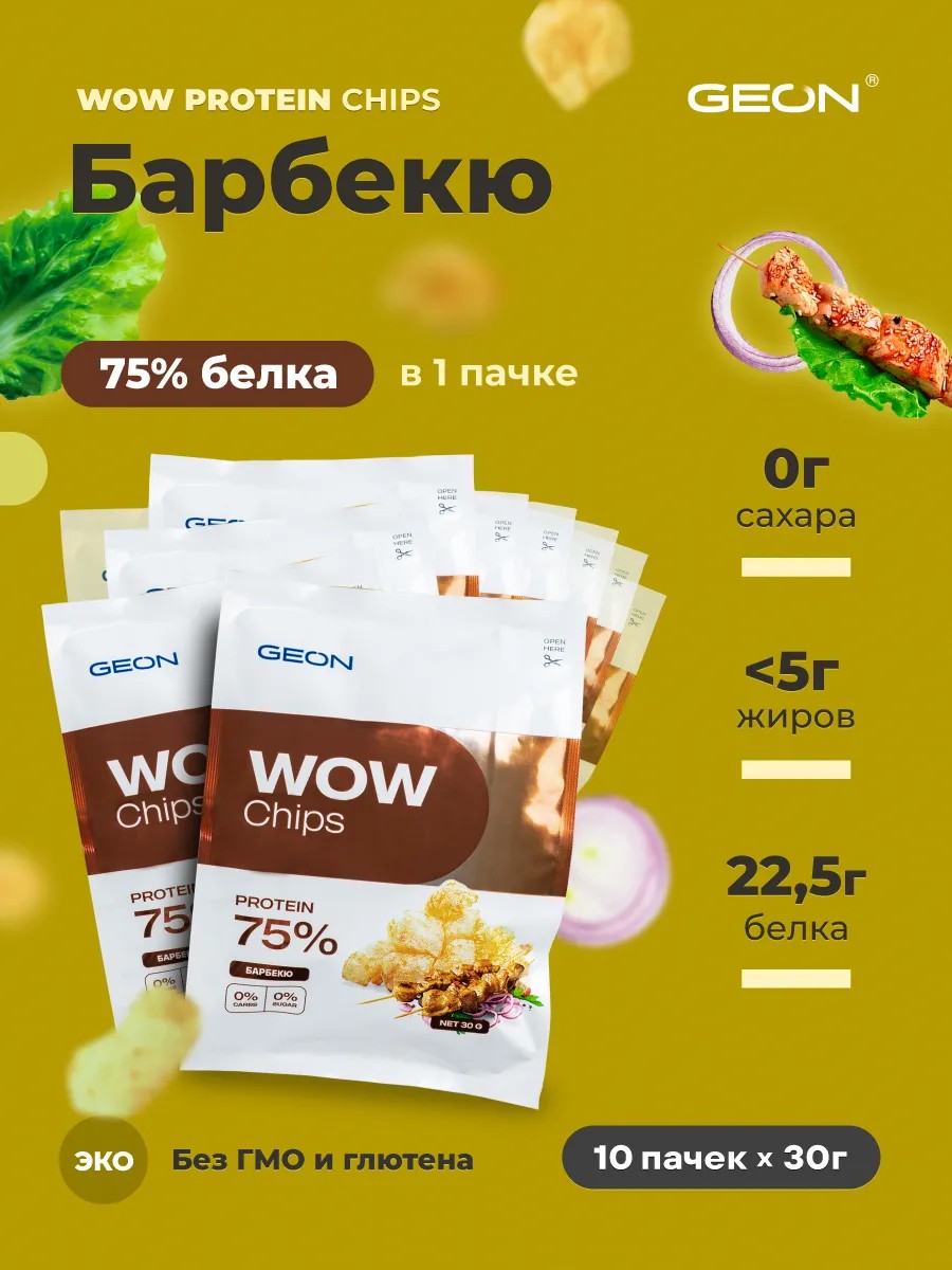 WOW Chips это75% белка, 0%углеводов именее15% жира. Состав новых чипсов отGEON уникален. При ихизготовлении неиспользуются соя, атем более— крахмал, они несодержат ниглютена, нисахара, нилактозы. WOW Chips— идеально подходят для тех, кто заботится осохранении фигуры или хочет привести еевпорядок, нопри этом неотказывать себе врадости съесть «что-то вкусненькое».