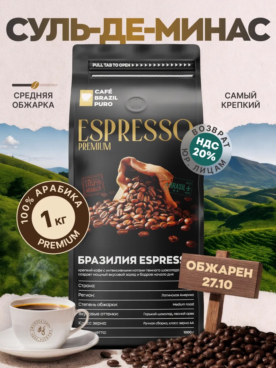 Кофе в зернах 1 кг Суль-де-Минас Арабика Premium