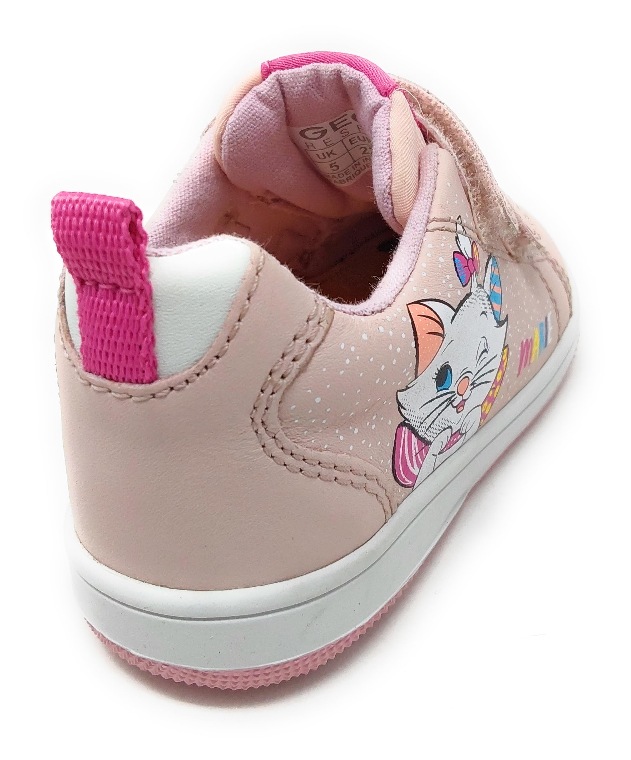 Comfortable, protective and flexible sneakers, designed for your baby girl's first steps. Geox patented perforated sole for breathability and comfort. Removable ortholite insole that's practical, hygienic, breathable, cushioned, flexible and antibacterial. Insole in chrome-free, non-toxic leather to keep the feet feeling dry and extremely comfortable at all times. Micro-mesh lining for breathability. Rubber outsole for grip and durability. flexy system outsole for flexibility. Shock-absorbing outsole with the softly cushioned system. Double strap fastening for easy entry and an adjustable fit. Check your feet system for the right size every time. There is a suitable shoe for every child. We have them all. Thanks to Geox's high level of specialisation, GEOX knows how to ensure the correct development and well being for young feet during every phase of growth. These little shoes have been specially designed to sustain the feet of children from one year and above and to provide the right support for every small step they take. The classic Geox rubber sole is based on patent: the combination of the perforated sole and the resistant breathable and waterproof membrane allow for natural temperature regulation, thereby creating the suitable microclimate inside the shoe that keeps feet dry and comfortable for the whole day.