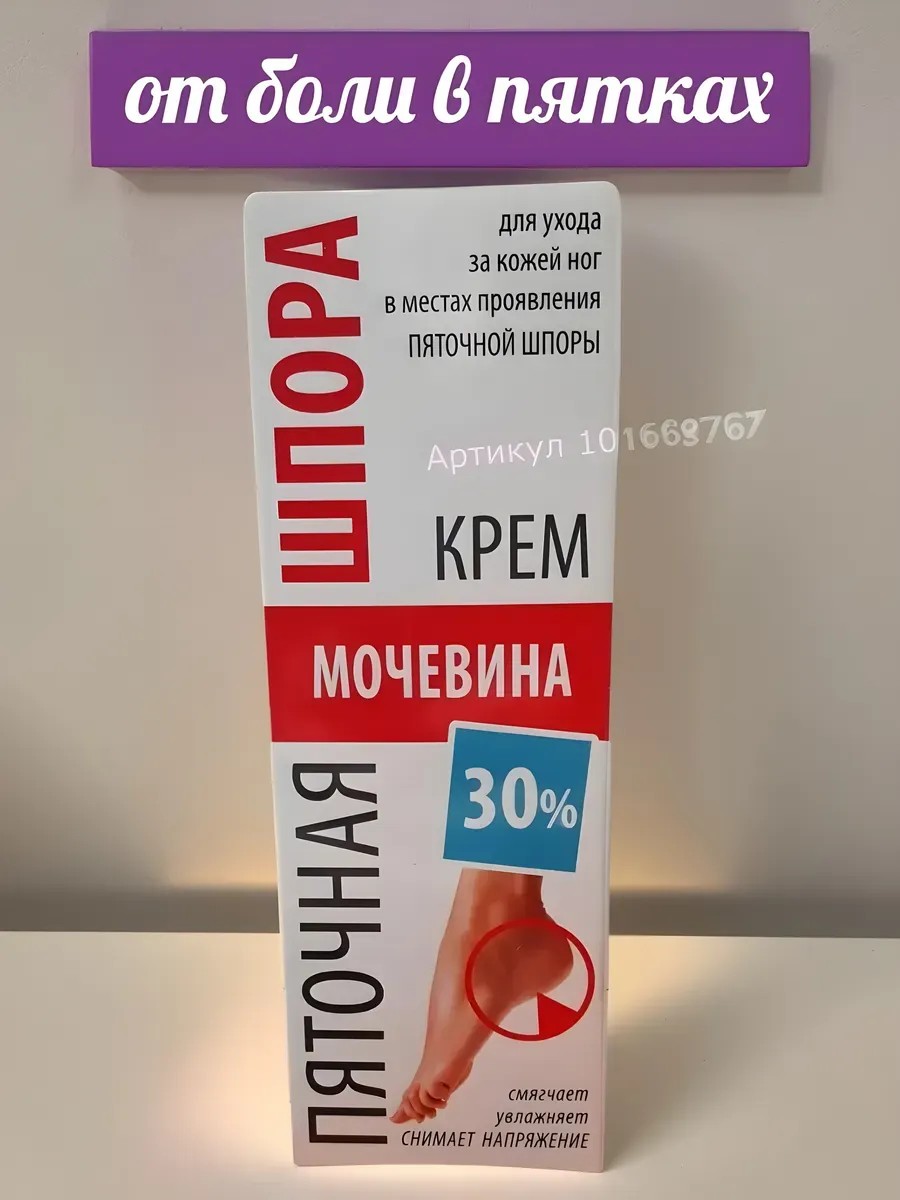 Крем для ног с мочевиной 30% Пяточная шпора , туба 75 мл - от пяточной шпоры. Предназначен для ухода за кожей ног в местах проявления пяточной шпоры. Мочевина (гидроксиэтилмочивина) – увлажняет, смягчает, регулирует водный клеточный баланс, создает пролонгированный эффект воздействия активных компонентов, снимает напряжение, способствует естественному отшелушиванию ороговевшего эпидермиса, восстанавливает эластичность кожи стоп, улучшает сенсорные ощущения. Композиция масел улучшает местное кровообращение в проблемных зонах, улучшает питание кожи, способствует выведению шлаков, снижает напряжение стресса в области нагрузок. Экстракты володушки, хрена, сирени, ивы в сочетании с эфирными маслами приятно охлаждают, облегчают состояние в проблемных зонах, способствуют уменьшению болевых ощущений. Увлажняющий крем для ног с мочевиной снимает усталость, дарит интенсивное увлажнение, смягчение и заживление кожи. Средство для пяток от натоптышей смягчает огрубевшую кожу, возвращает ей нежность и мягкость. Питательный крем для сухой кожи ног имеет регенерирующий и заживляющий эффект. Смягчающий крем для ступней от трещин и мозолей (размягчитель) ускоряет процесс обновления кожи, избавляя ножки от проблем. Органическая косметика для ухода за кожей имеет натуральный состав. Мочевина сокращает появление трещин, оказывает заживляющее и увлажняющее действие. Ментол направлен охлаждать и освежать, успокаивать и обезболивать. Он имеет противовоспалительный эффект, способствует снятию воспалений и покраснений. Каждой девушке, женщине понравится результат от применения: гладкие ножки, состояние которых можно описать двумя словами - красота и здоровье. Крем воск для сухой кожи, является практичным подарком для близких людей: маме, сестре, подруге, бабушке. Средство для пяток можно использовать в качестве основы домашнего ухода и как уход за кожей.