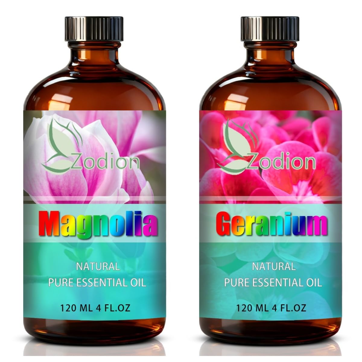 ZODION Magnolia Essential Oil – Elegant magnolia aroma that refreshes your senses, adds warmth to your space, and complements baths, diffusers, and DIY projects. ZODION Geranium Essential Oil – Floral geranium scent that energizes your senses, refreshes the air, and complements baths, diffusers, and DIY blends.