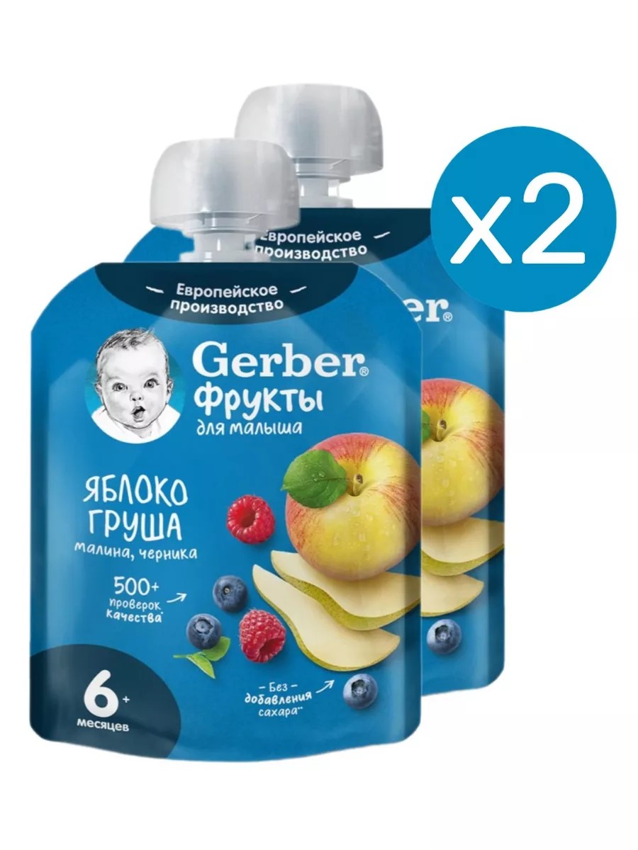 Фруктовое детское пюре Gerber яблоко-груша-малина-черника с 6 месяцев 90 г - это вкусное и полезное питание для вашего малыша.