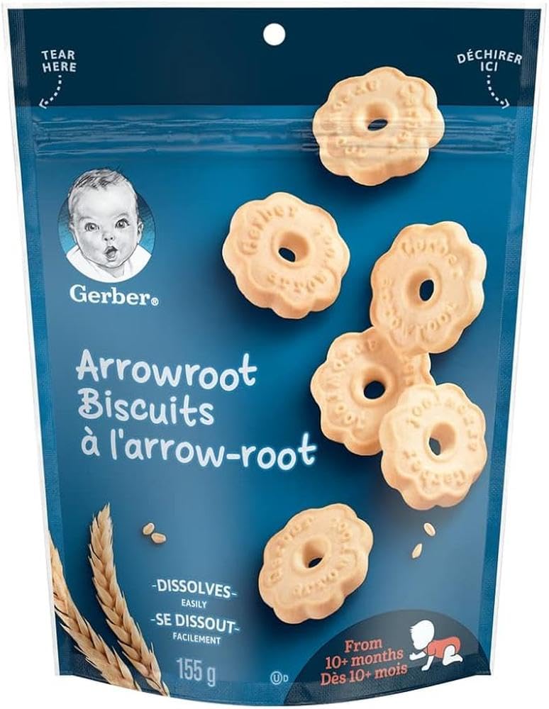 Hands-On training your toddler will love. with A fun, easy-to-hold shape, NESTLÉ GERBER arrowroot biscuits are great for toddlers learning to self-feed. These biscuits dissolve quickly in the mouth and are easily mashed with or without teeth, making them easy to chew and swallow. Conveniently packaged, NESTLÉ GERBER arrowroot biscuits have no artificial flavors, colors, or artificial sweeteners-so you'll love them too.Conveniently packaged for families on-the-go. Easy-To-Hold shape, great for little ones learning to self-feed. No artificial flavors, colors, or sweeteners. Dissolve quickly in the mouth.