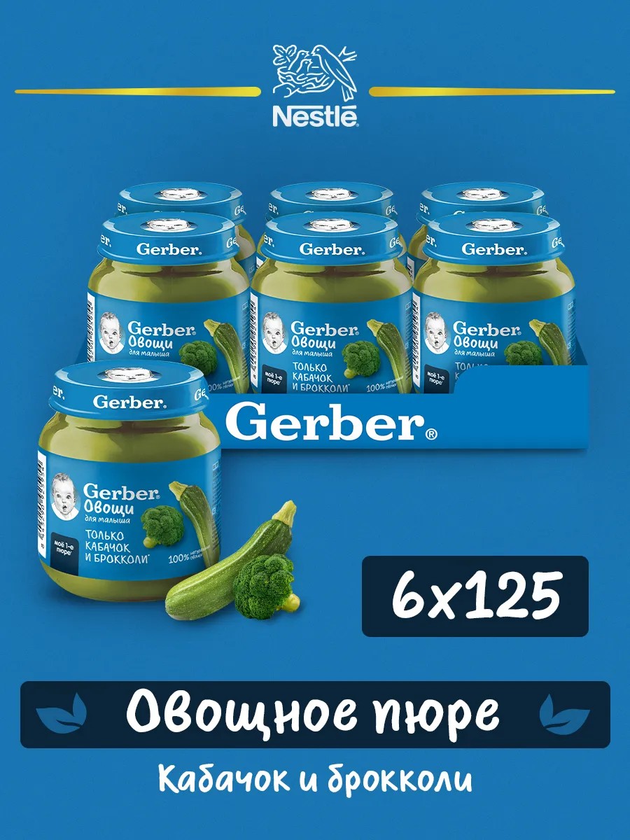 Gerber (Гербер). Продукт детского питания для детей раннего возраста, продукт прикорма, овощное пюре "Кабачок и Брокколи".