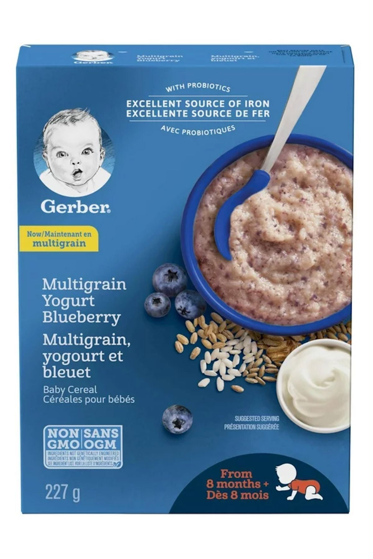 • • GERBER Stage 3 Multigrain Yogurt Blueberry Infant Cereal (227 g) is an excellent source of essential nutrients.