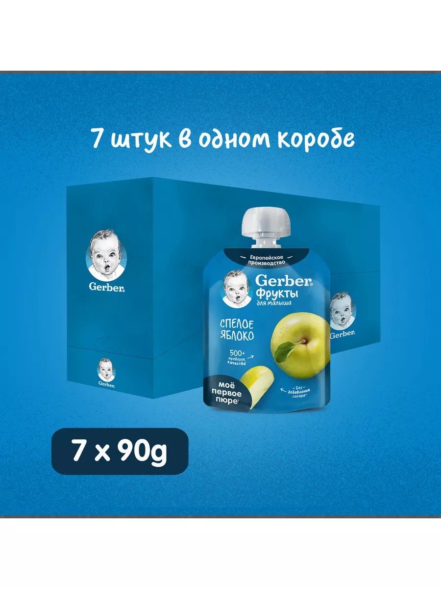 Фруктовое пюре Gerber «СПЕЛОЕ ЯБЛОКО». *Для питания детей с 4 месяцев в соответствии с законодательством РФ,РБ,РК.