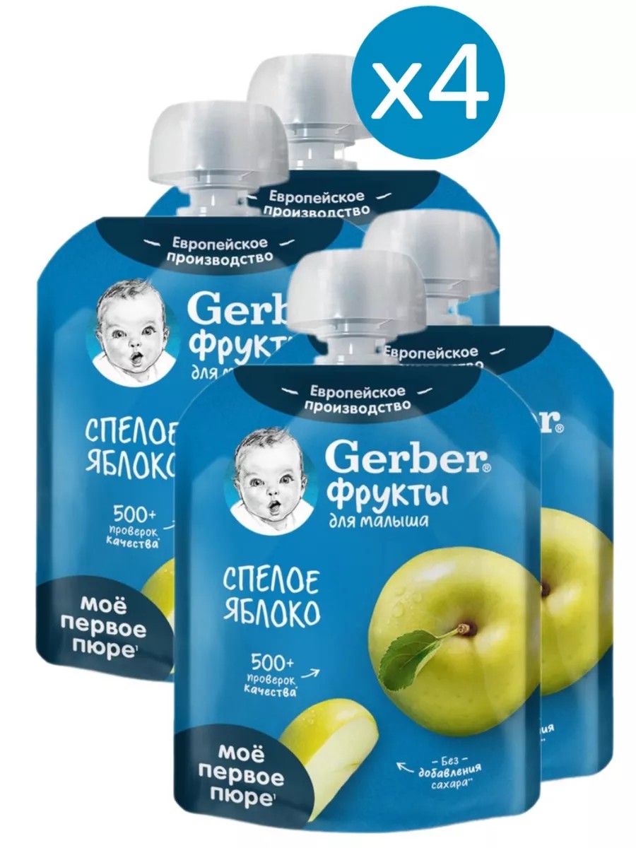 Фруктовое пюре Gerber «СПЕЛОЕ ЯБЛОКО». *Для питания детей с 4 месяцев в соответствии с законодательством РФ,РБ,РК.
