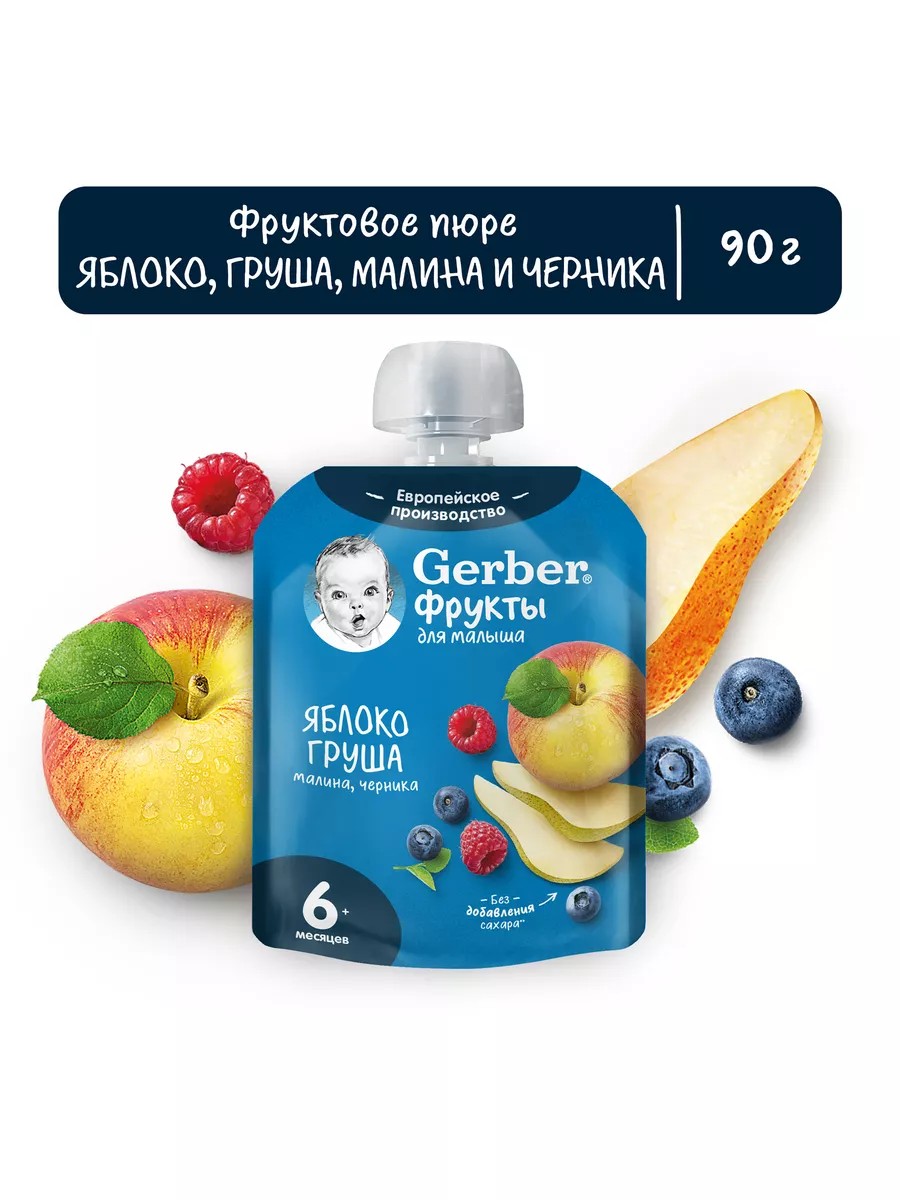 Изготовлено без использования генетически модифицированных ингредиентов, искусственных консервантов, красителей, ароматизаторов и сахара. Только лучшие фрукты и ягоды собранные вручную попадают в детское питание Gerber. Продукция Gerber проходит более 500 проверок на разных этапах производства, чтобы предложить лучшее вашему малышу.