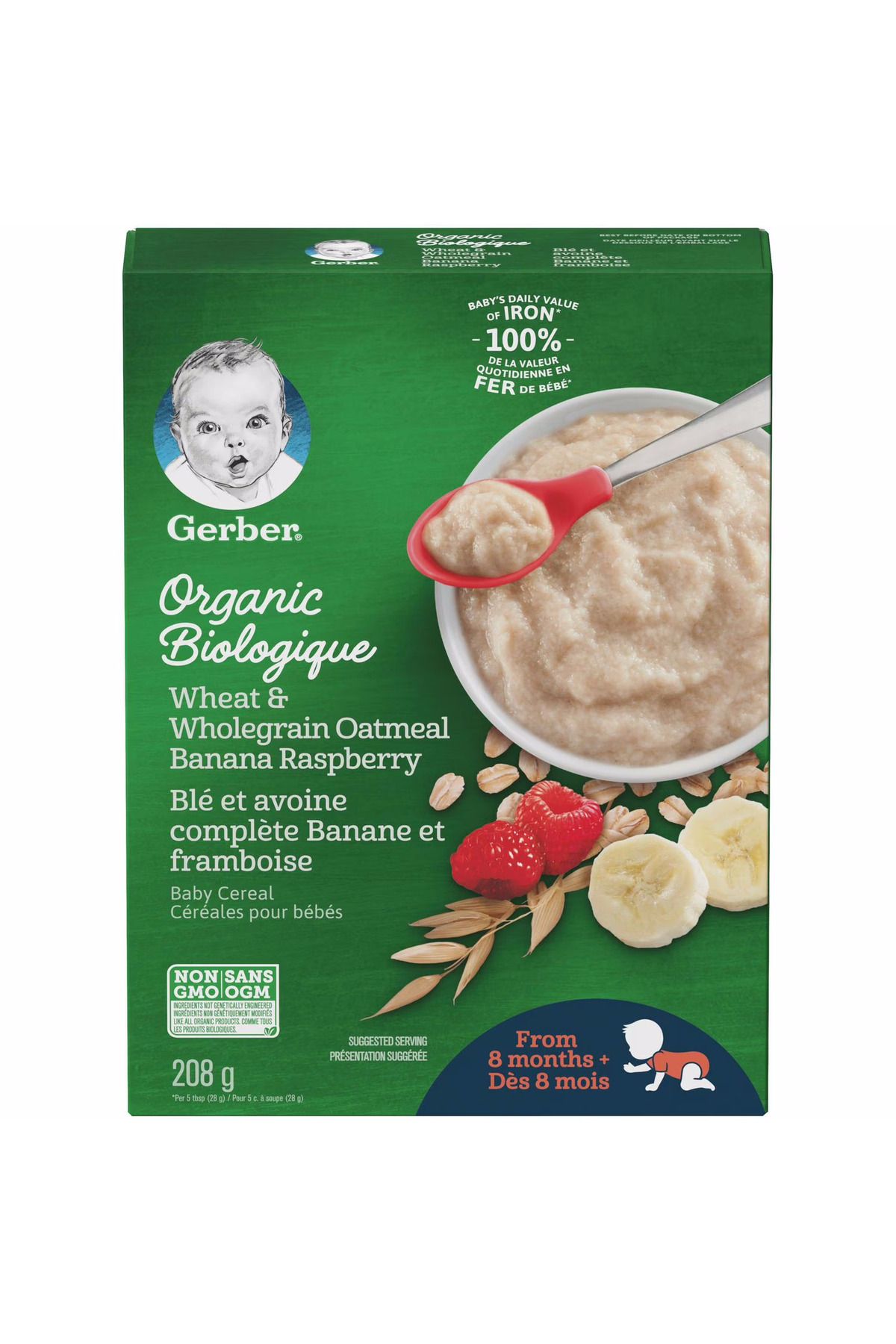 Gerber Organic- Banana Raspberry - Wheat and Whole Oatmeal Raspberry and Banana Spoon Food - 8 months - 208 Gr