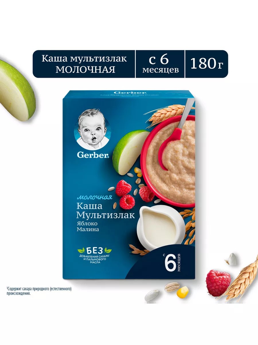 Название: Каша молочная мультизлаковая Gerber с яблоком и малиной, с 6 мес., 180 гр., 2 шт.