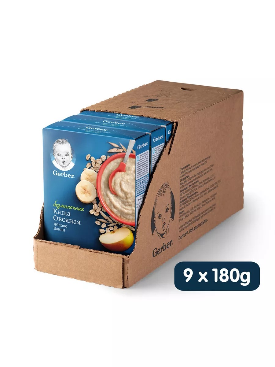 Gerber Dry Dairy-Free Oatmeal Banana-Apple Porridge for Babies 6 Months and Up, 180g, 9 pcs.